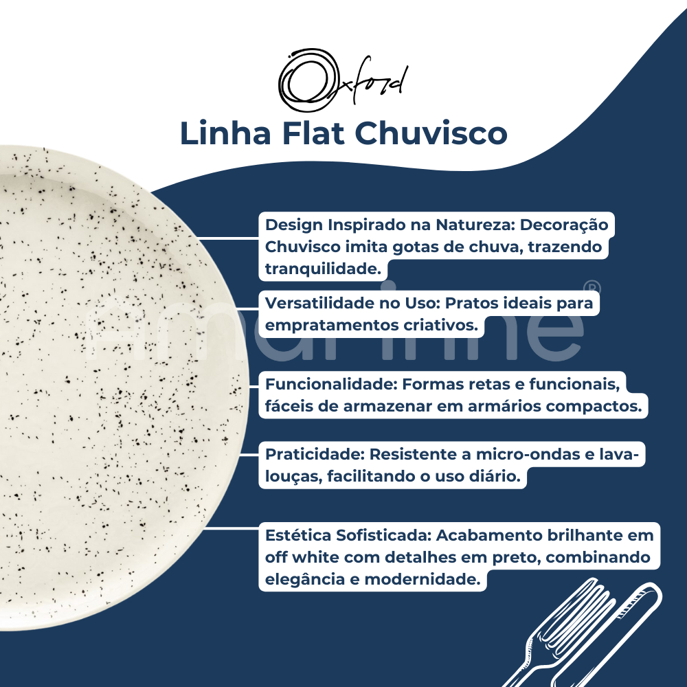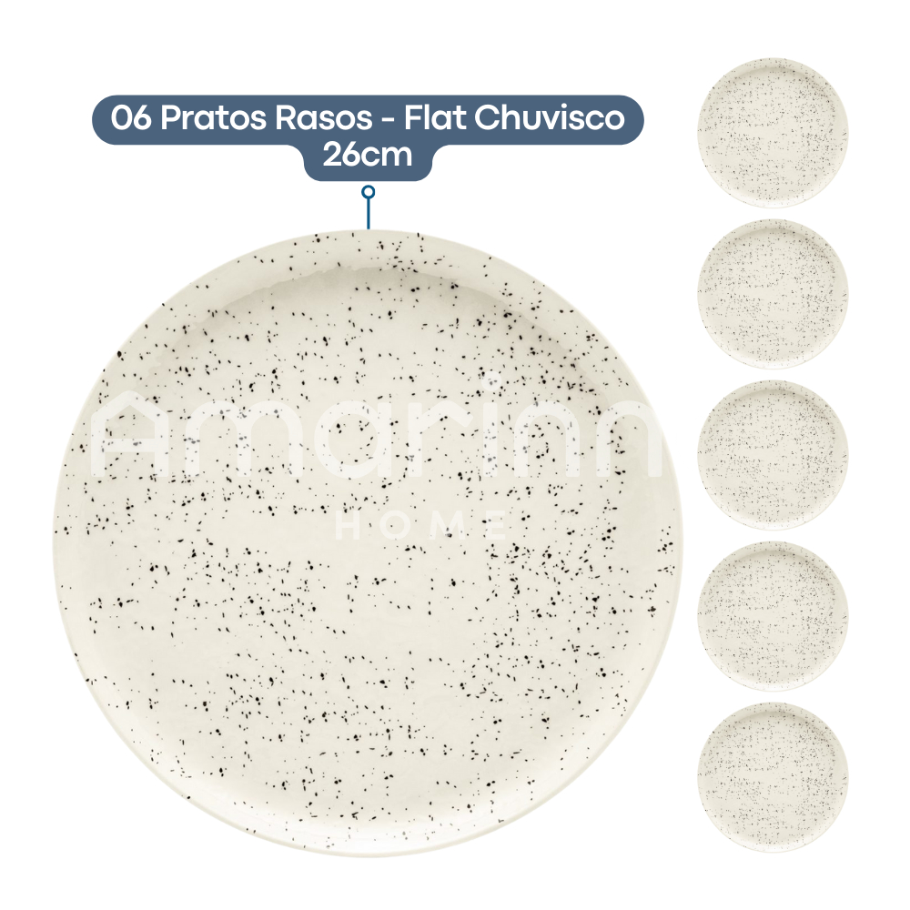 Prato Raso Flat Chuvisco 26cm 6 Unidades Oxford Jogo De Pratos