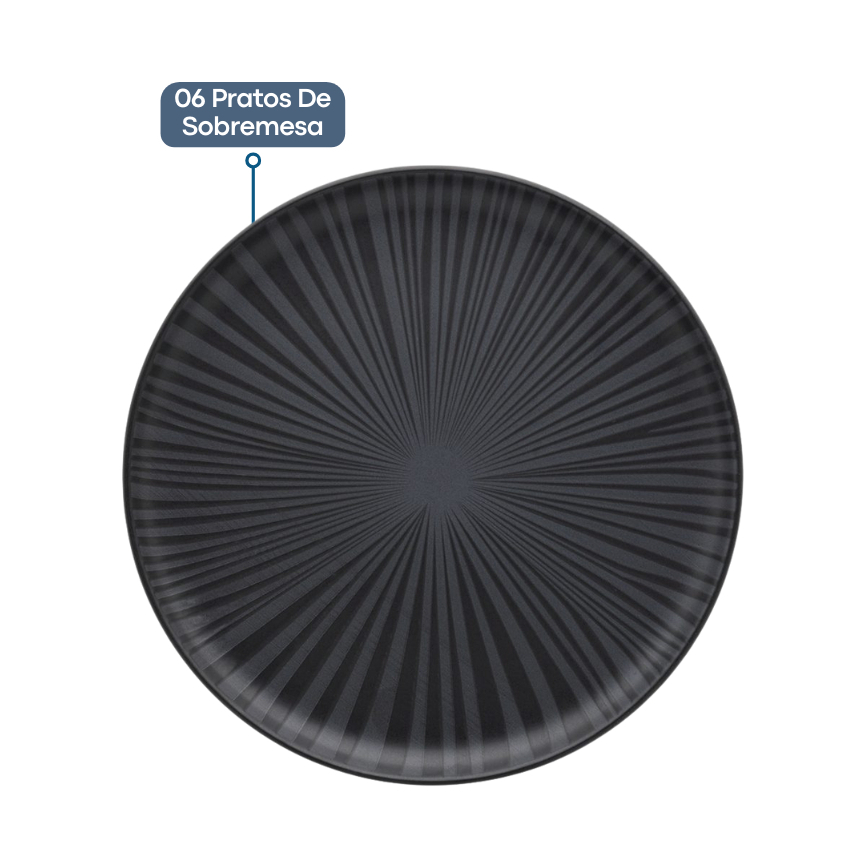 Prato Sobremesa Flat Ônix 6 Unidades 20cm Oxford Preto Fosco