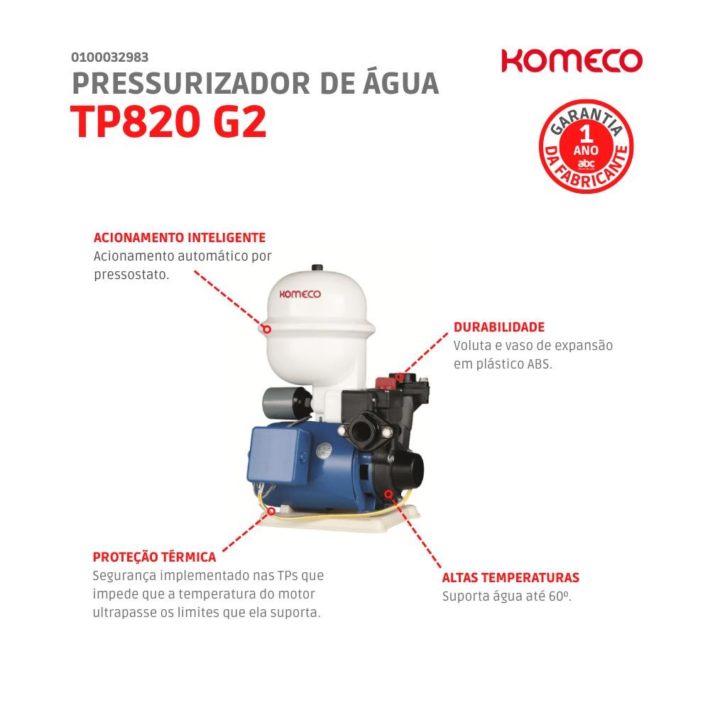 Pressurizador De Água TP820 G2 Bivolt Komeco