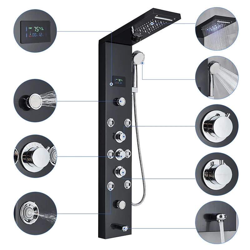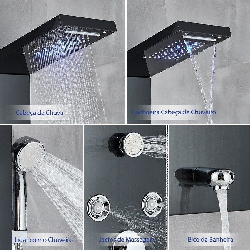 Preto LED Painel Do Chuveiro Torneira Misturador Para Banheira Torneira Com Massagem SPA Corporal