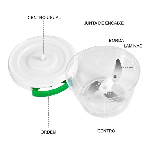 Processador de Alimentos Manual para Cozinha 3 Lâminas 500ml