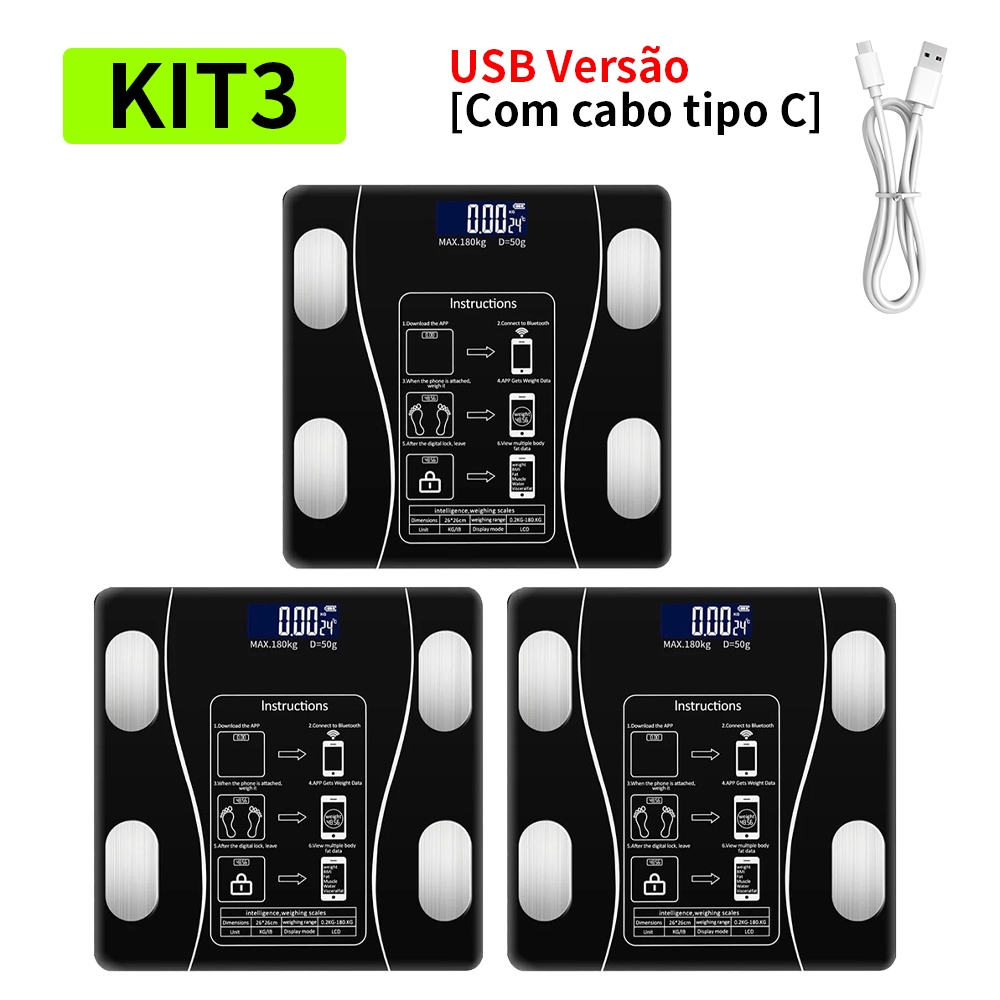 Profissional Balança Bioimpedância Digital lmc Aplicativo Bluetooth, USB, Fitness Treino 180kg