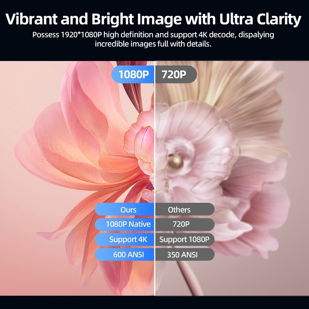 Projetor GOOJODOQ 1080P 650ANSI , Suporta HDR10 Full HD 4K , Decodificação E Correção Automática , Adequado Para Jogos .