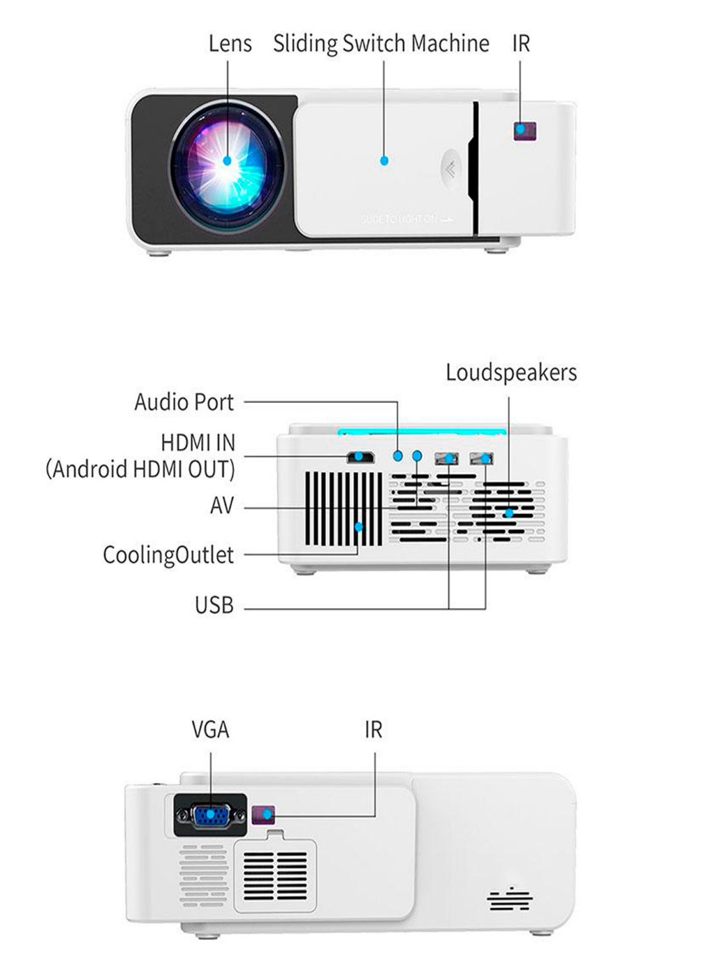 Projetor Led Portátil Espelhamento Wifi 2500 Lúmens T5