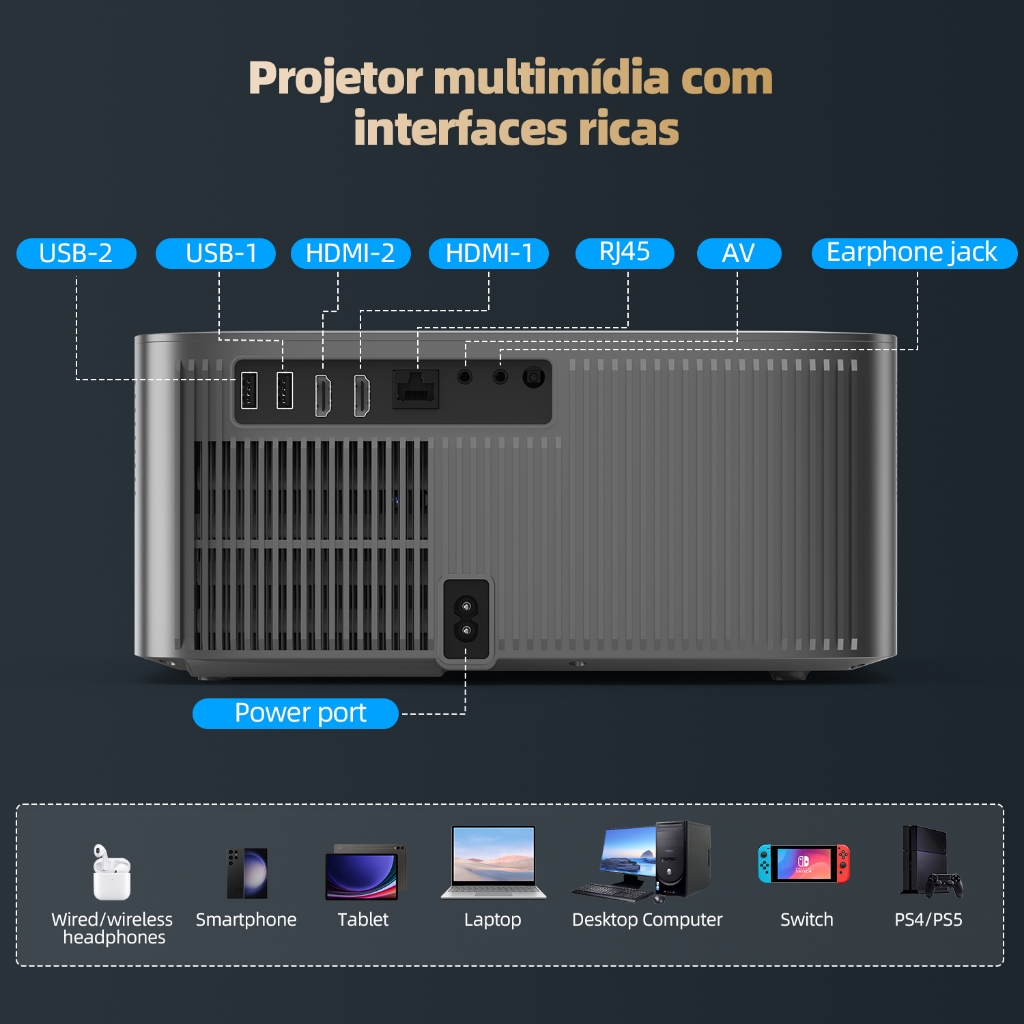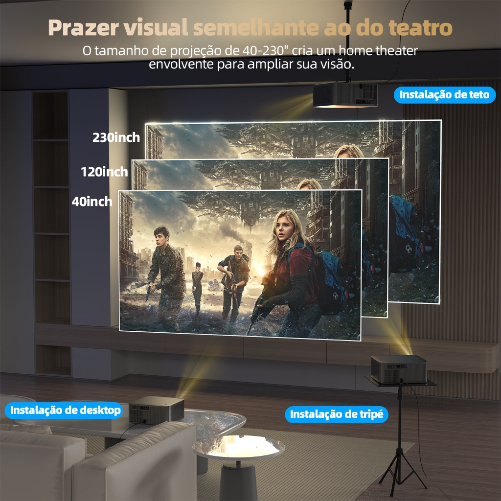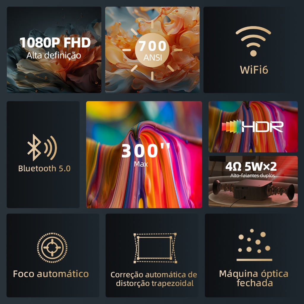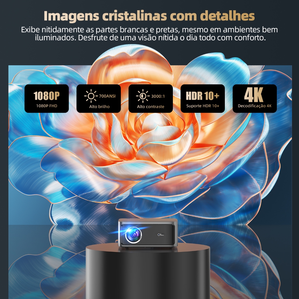Projetor Netflix BETTDOW 1080P 4K Full HD 1000ANSI com tela grande de 300 polegadas HDR10+ Bluetooth 5.0
