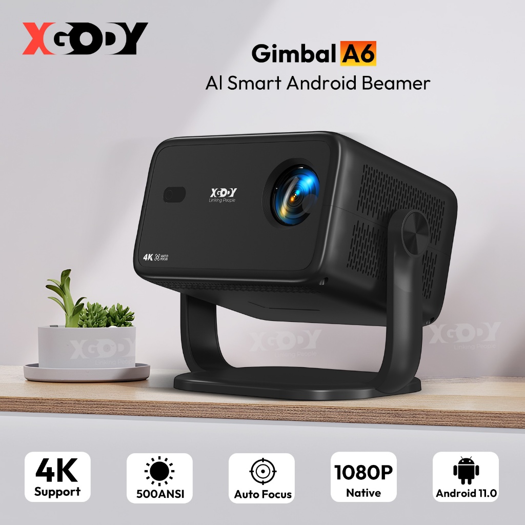 Projetor XGODY Gimbal A6 500ANSI Correção Inteligente Android 11 Alto-Falante Embutido Foco Automático