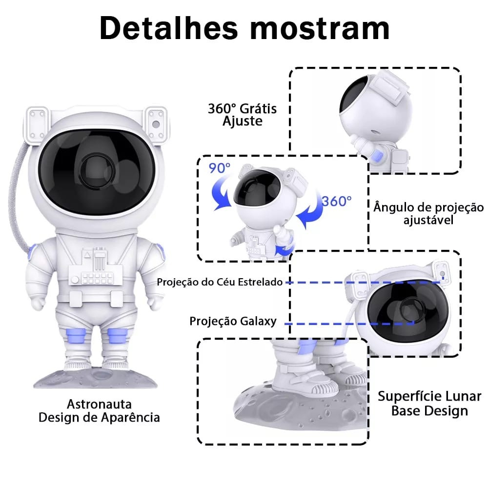 Projetor luminária astronauta luz led galáxia estrelas
