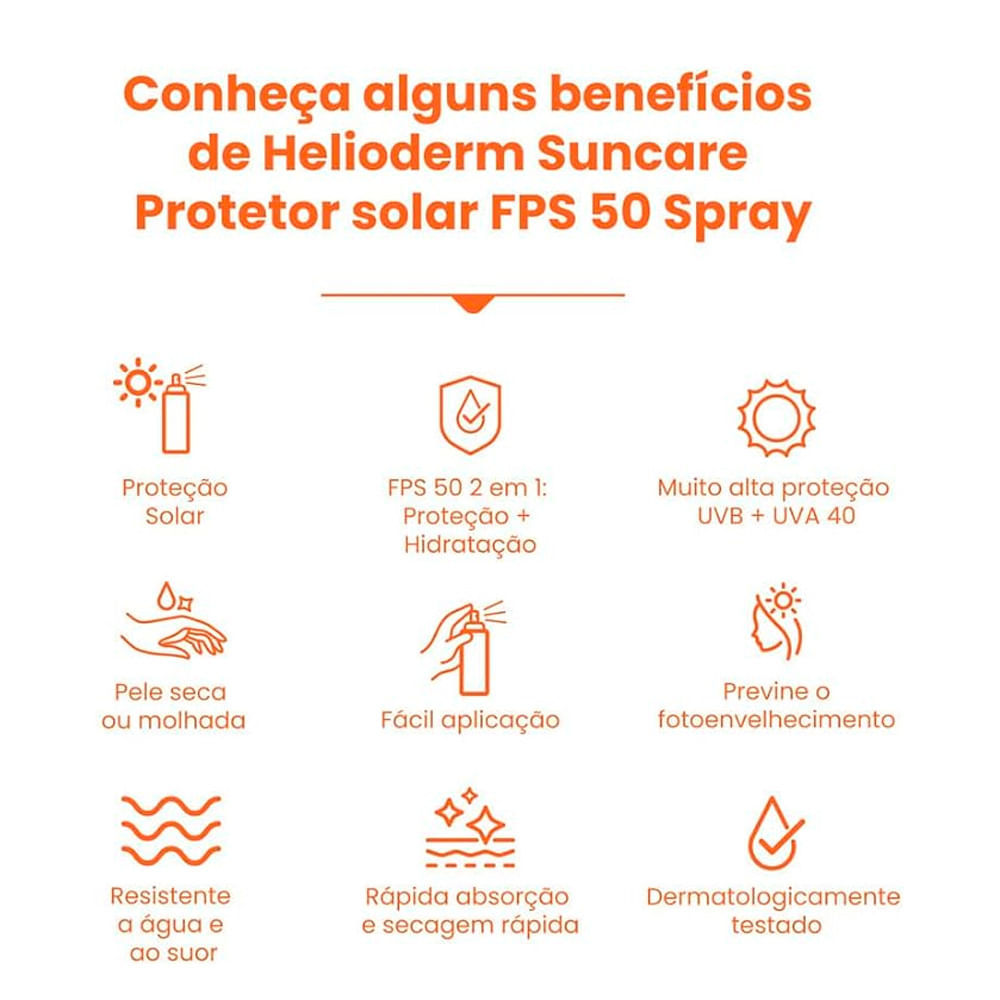 Protetor Solar Spray Helioderm Suncare FPS 50 200ml
