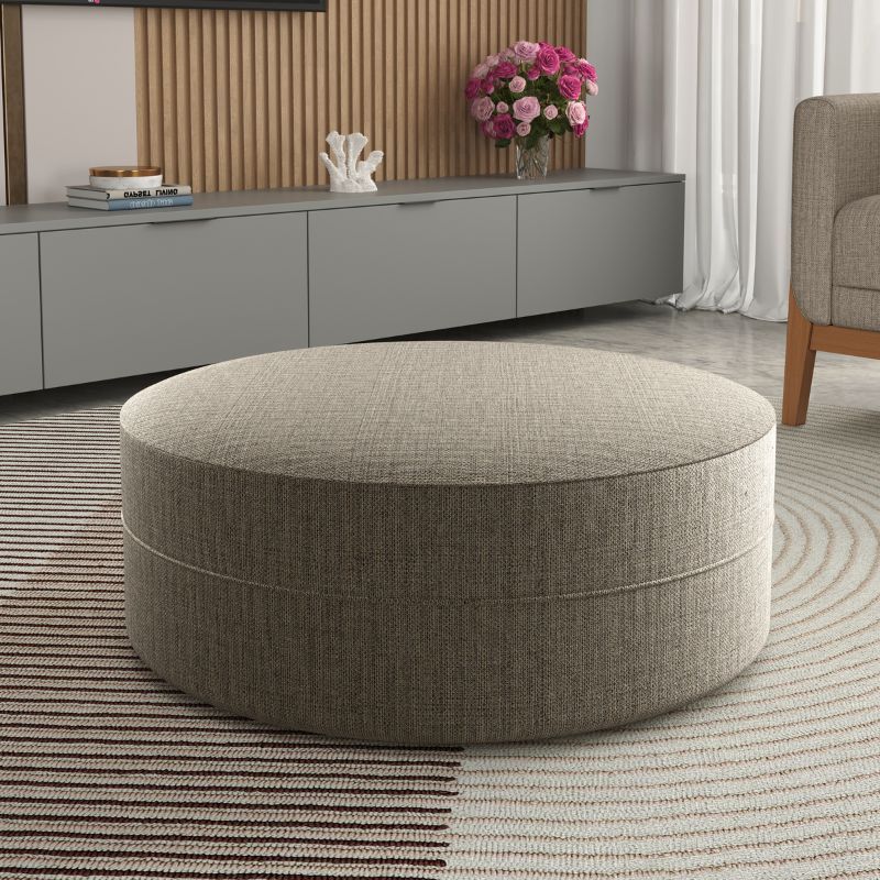 Puff Redondo Decorativo Soho Sala Estar Quarto Confortável Linho - MLDM