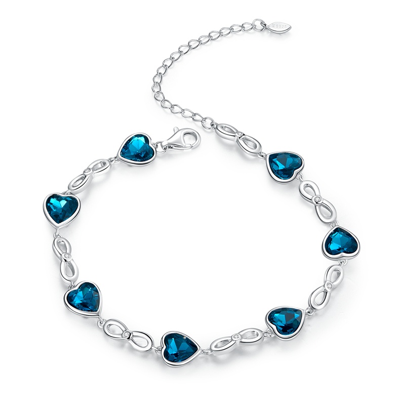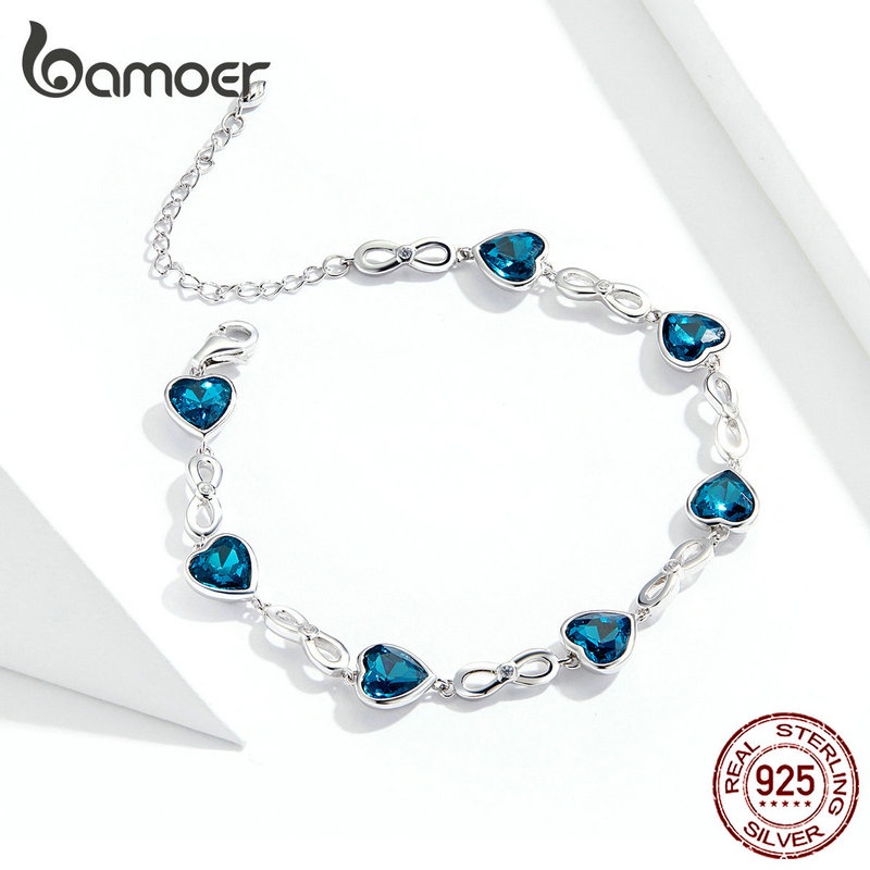 Pulseira Bamoer 925 Prata Brilhante Azul Coração Zircônio Jóias SCB163