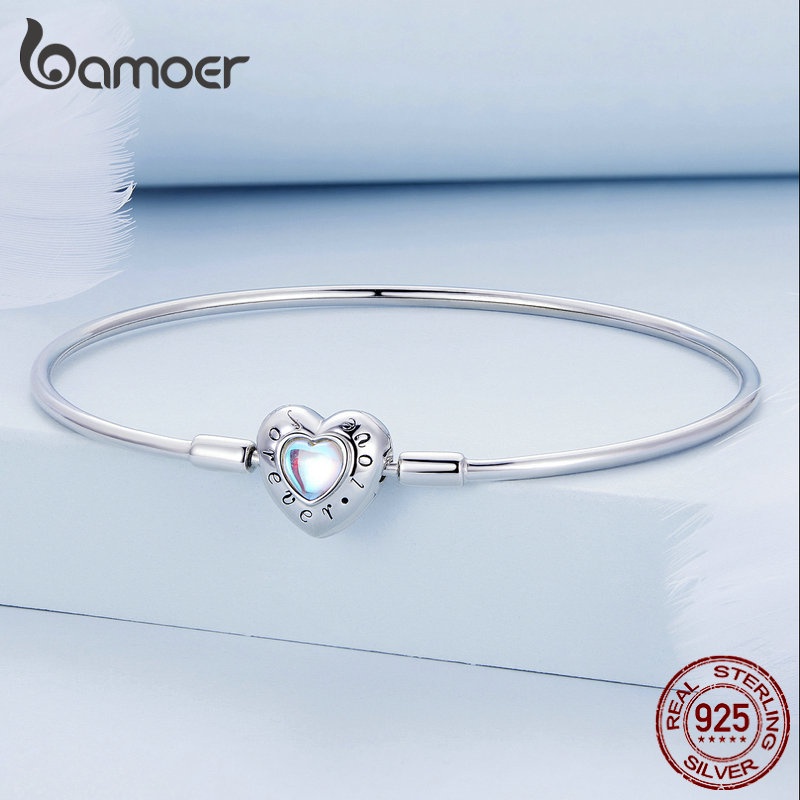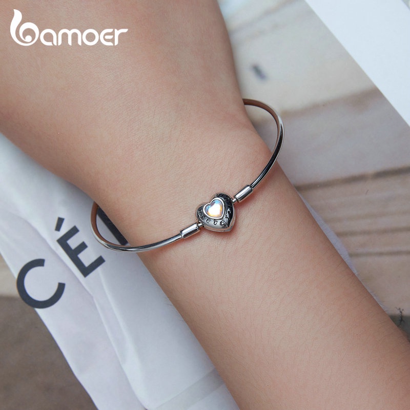Pulseira Bamoer 925 Prata Simples Coração Padrão Para Mulheres Amantes Da Moda Acessórios