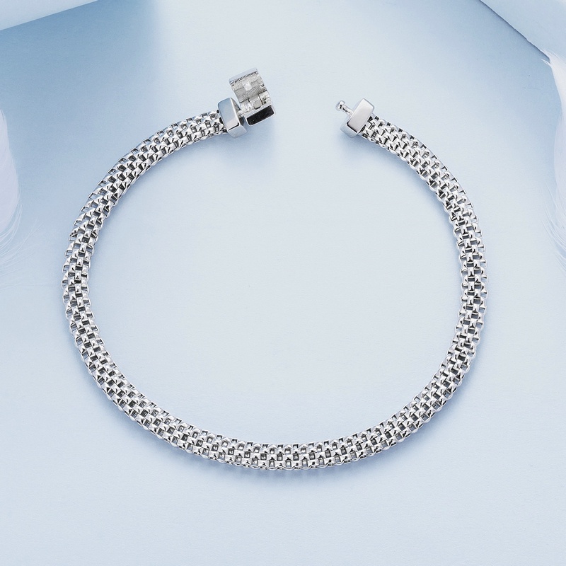 Pulseira Bamoer 925 Silver Sterling De Malha À Base De Prata Para Mulheres BSB124