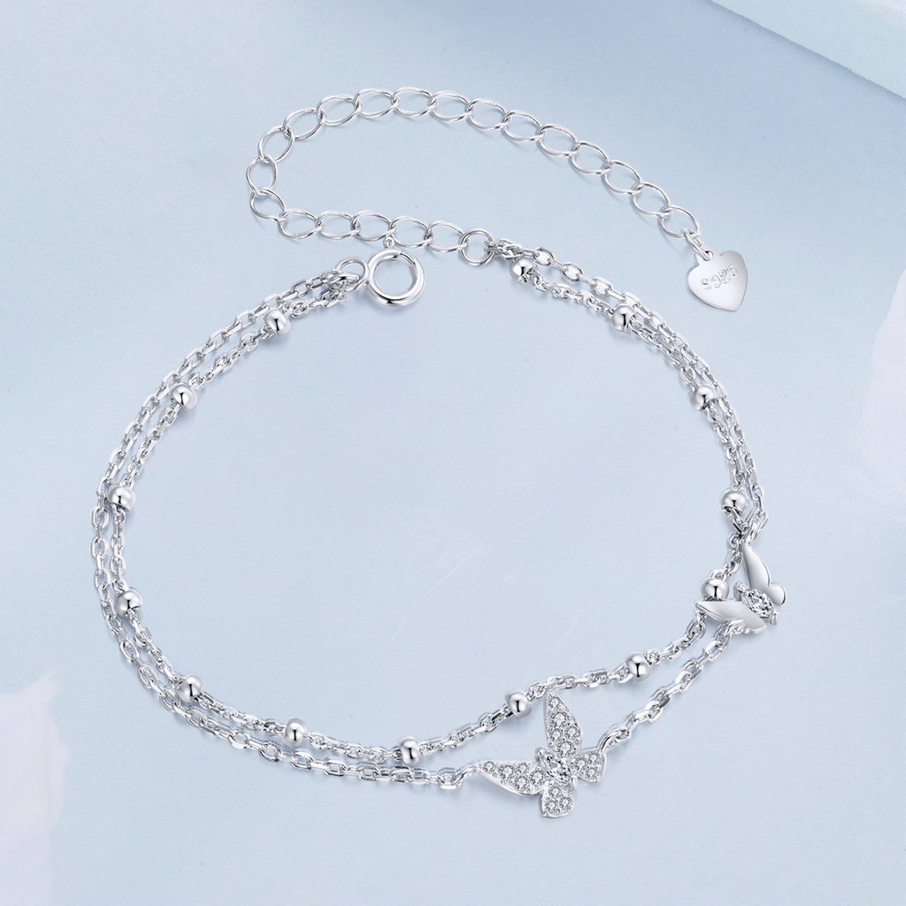 Pulseira Borboleta De Dupla Camada Bamoer 925 Sterling Sliver Bracelet Jóias Para Mulheres BSB154