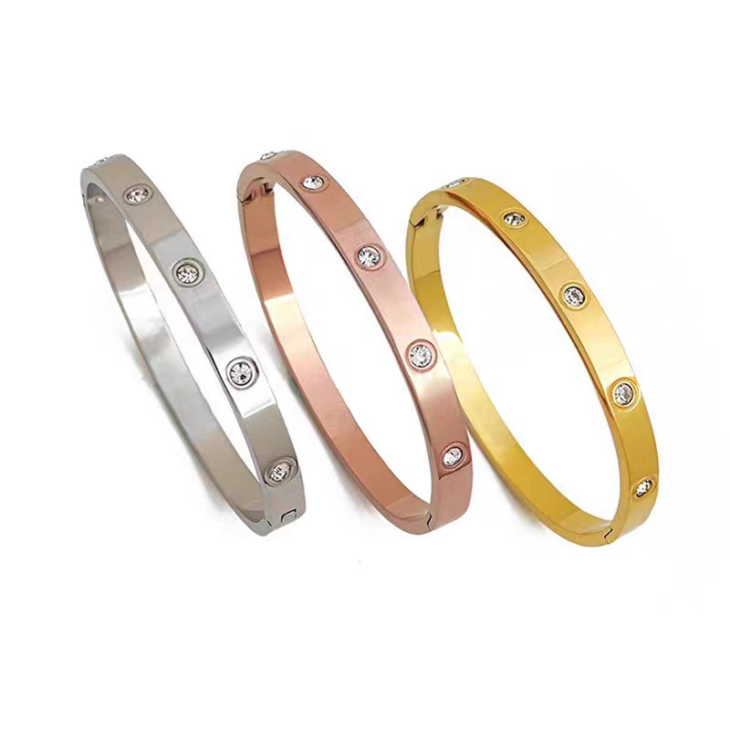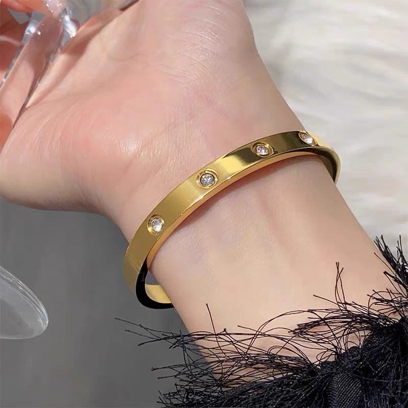 Pulseira De Aço Inoxidável Banhada A Ouro 18K Com Pedras Preciosas De Cristal Para Presente De Luxo Feminino
