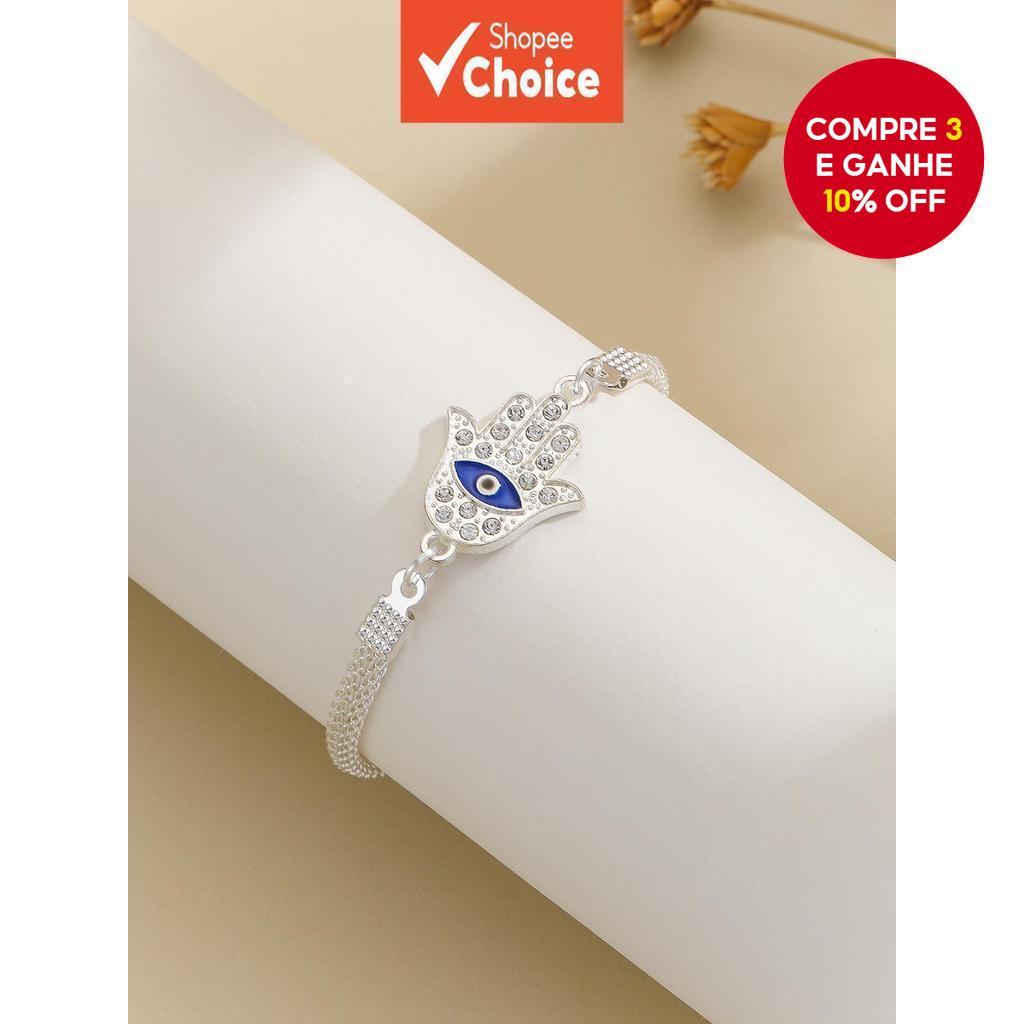 Pulseira De Cristal De Mau Olhado De Prata De 1 Peça Para Mulheres