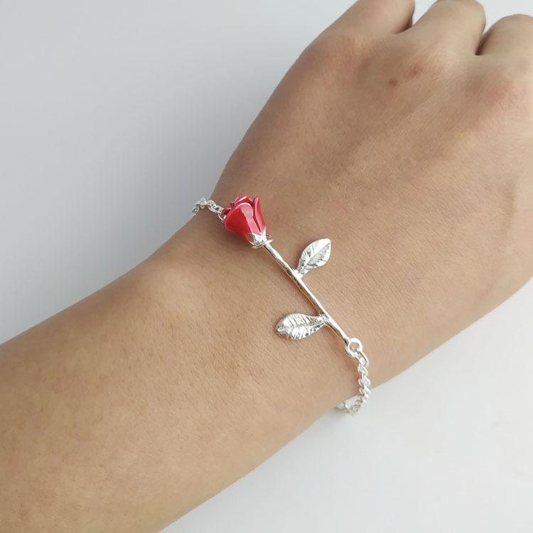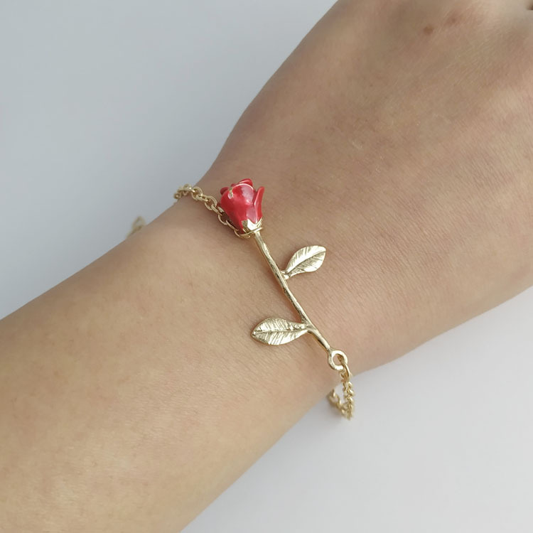 Pulseira De Flor Rosa Vermelha Minimalista Doce Moda Joias Fornecedor Por Atacado