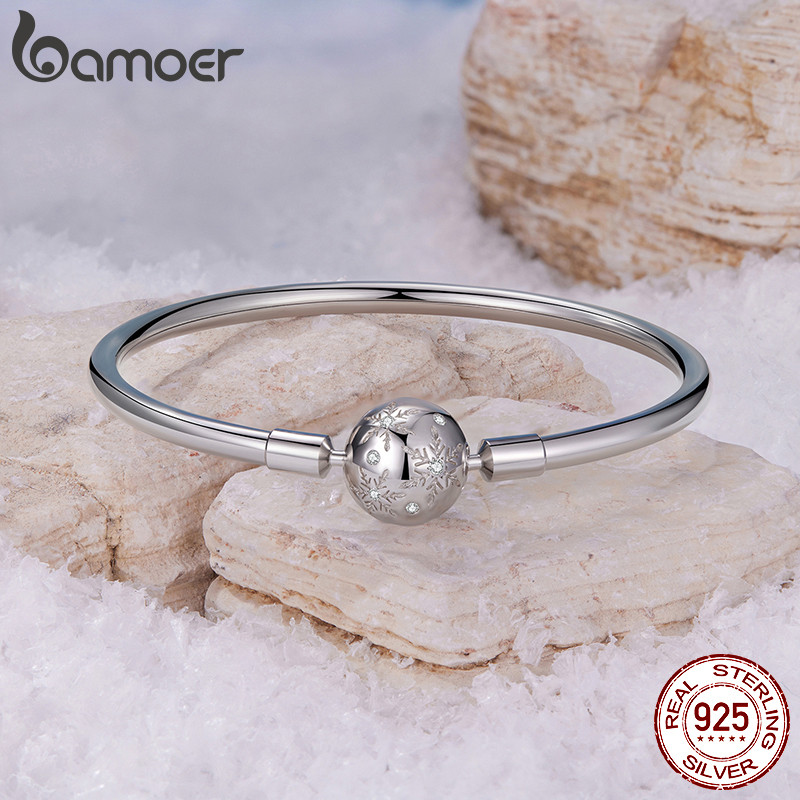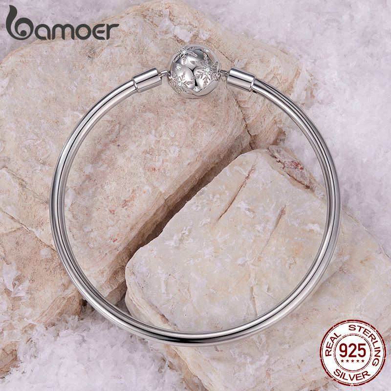 Pulseira De Prata Esterlina 925 Bamoer Flor De Gelo Básica 17 Cm Design Joias Presentes Para Mulheres