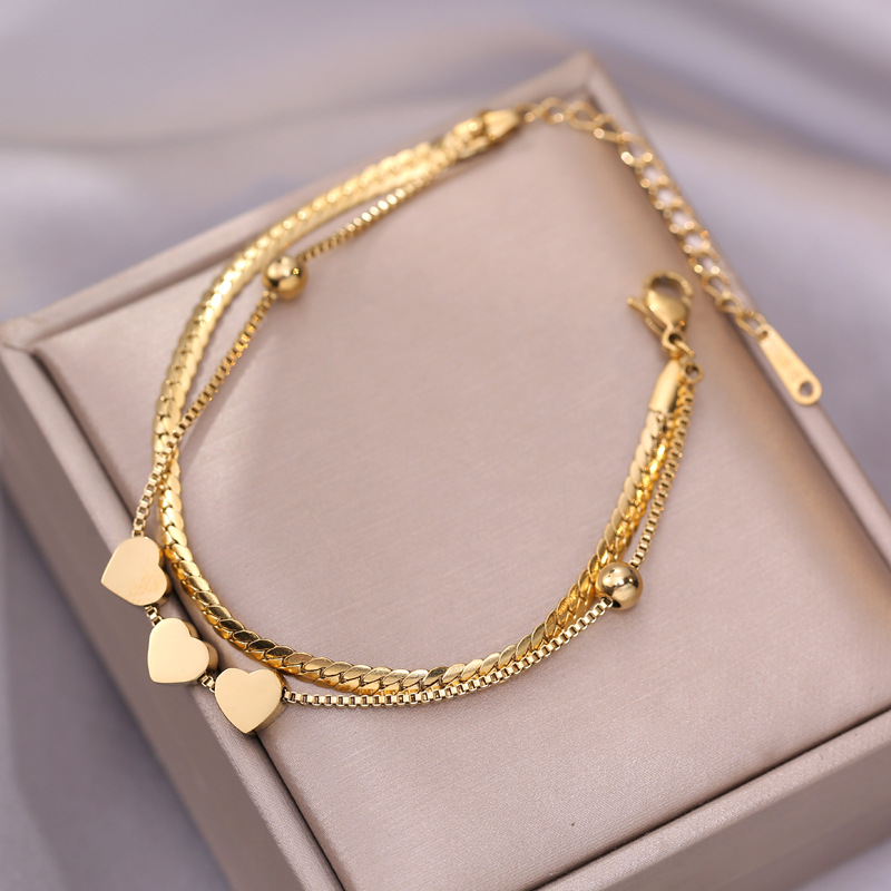 Pulseira Dupla De Aço Titânio Estilo Ins Joias Minimalistas Não Desbotadas