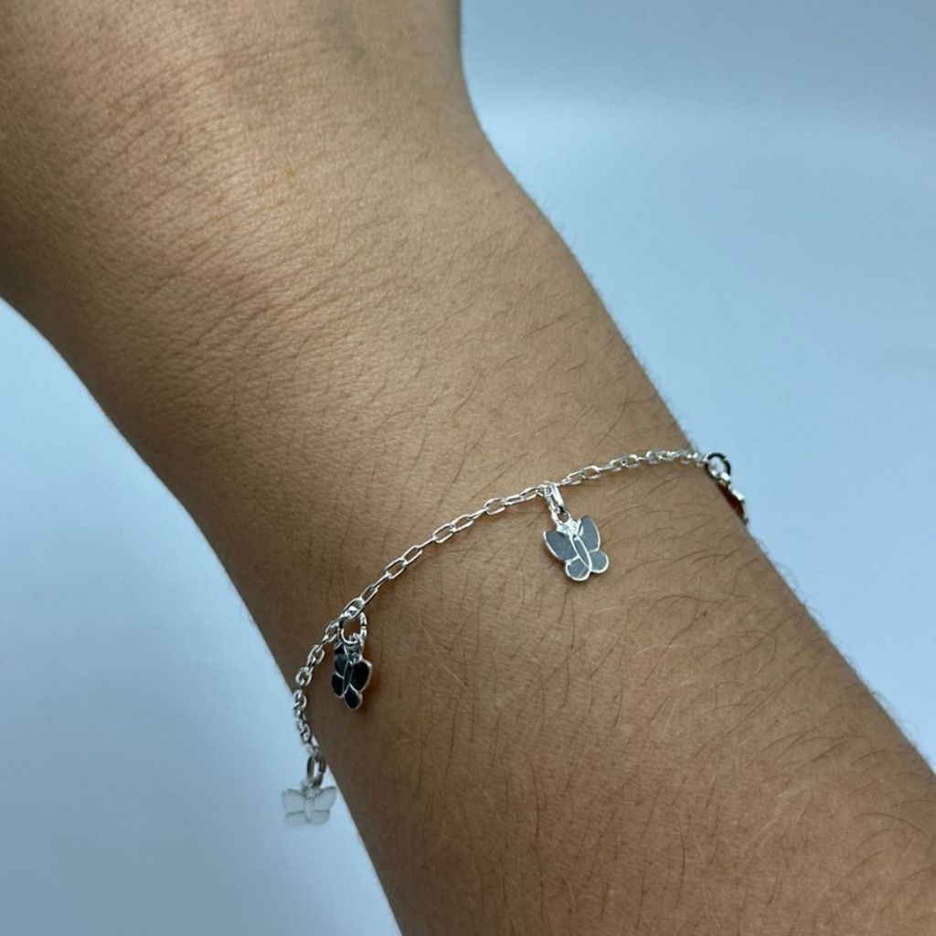 Pulseira Feminina de Prata 925 Borboletas