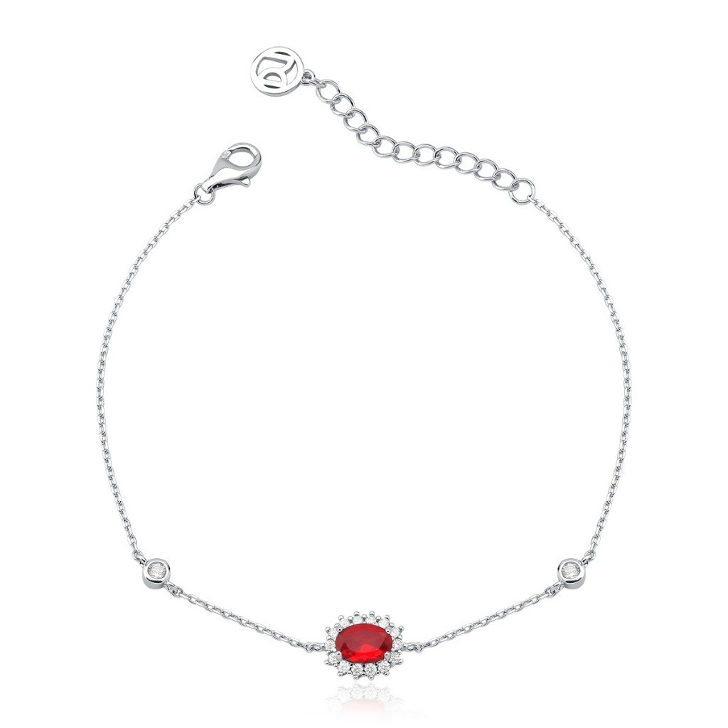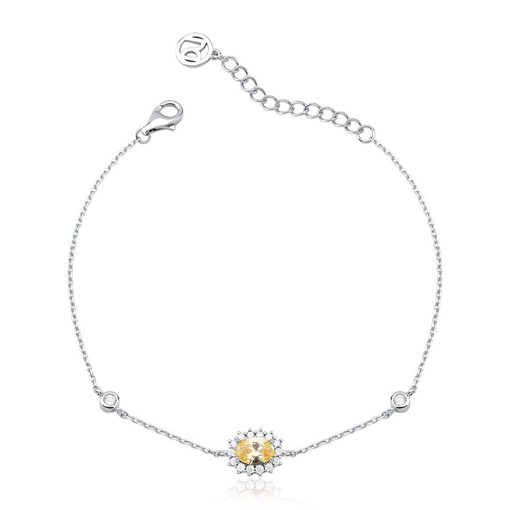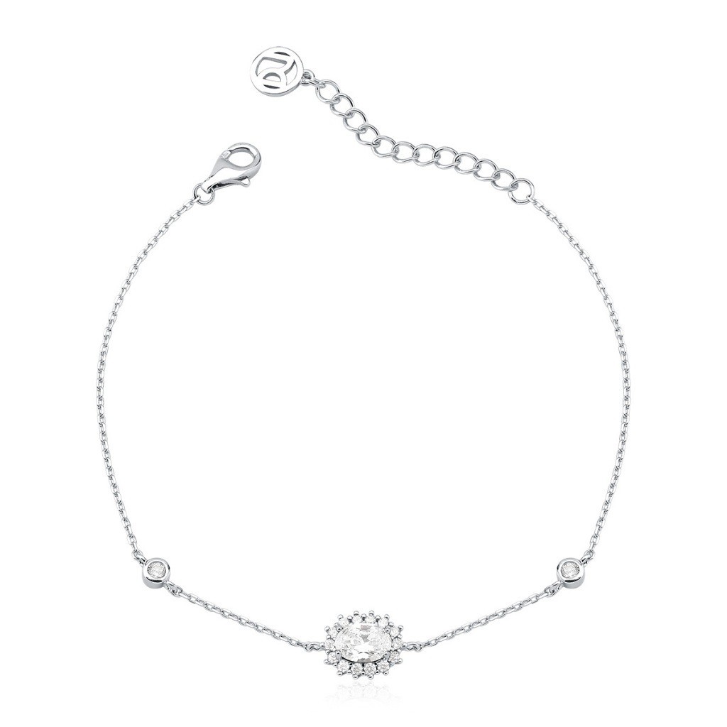 Pulseira Feminina de Prata 925 Cadeado com Zircônia Oval