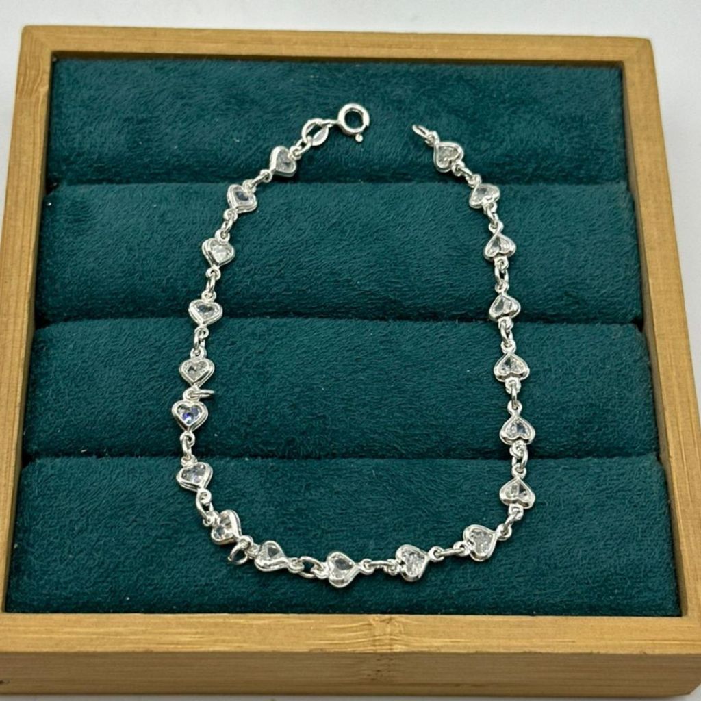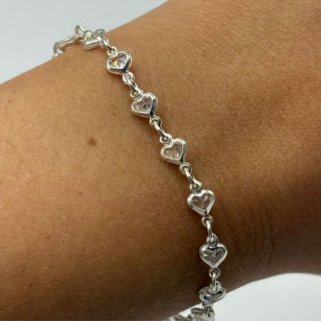 Pulseira Feminina de Prata 925 Corações com Zircônia