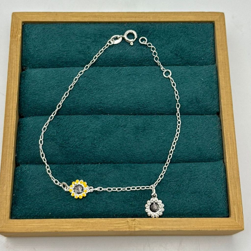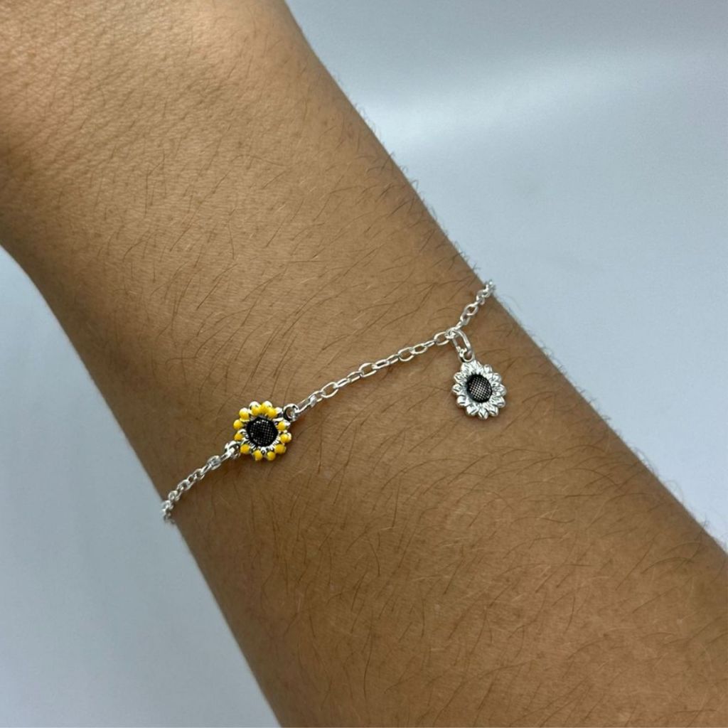 Pulseira Feminina de Prata 925 Girassol