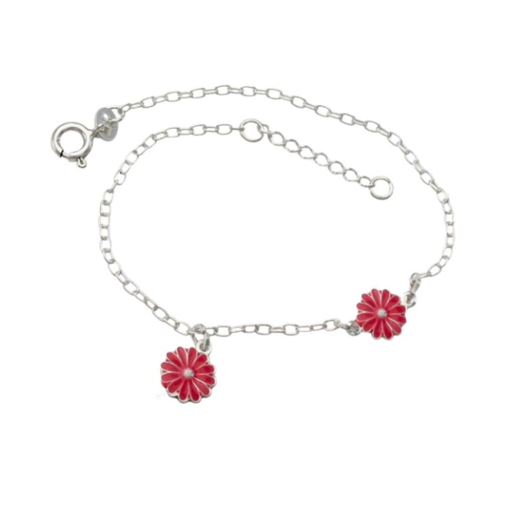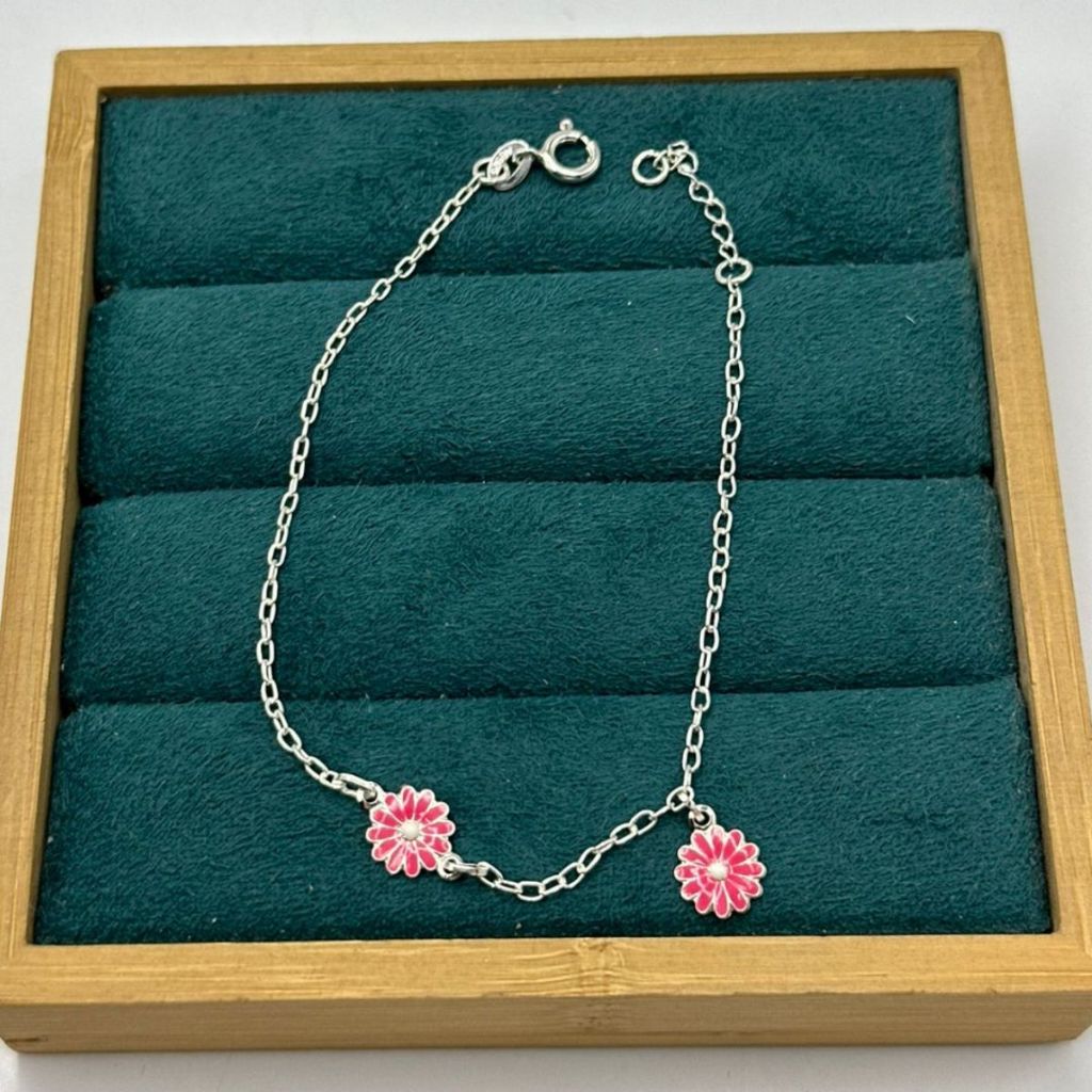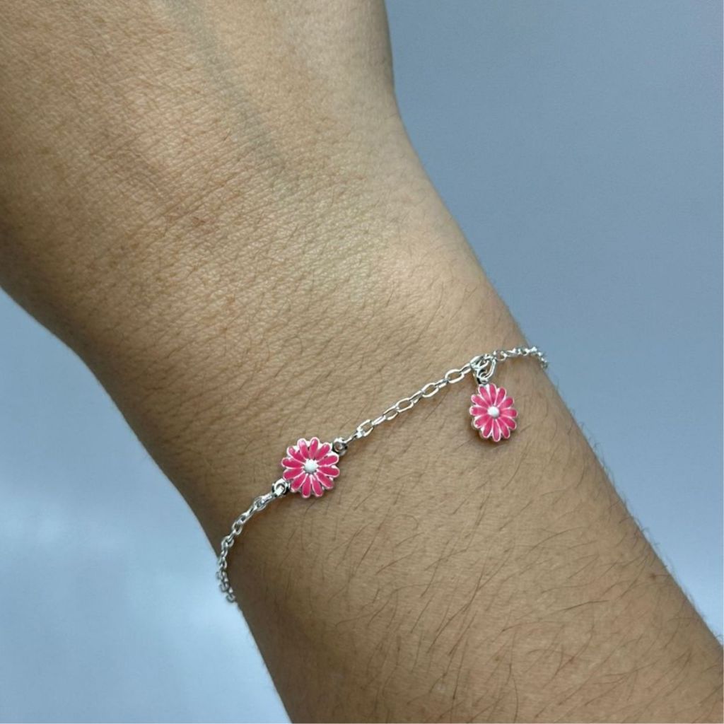 Pulseira Feminina de Prata 925 Margaridas Rosa