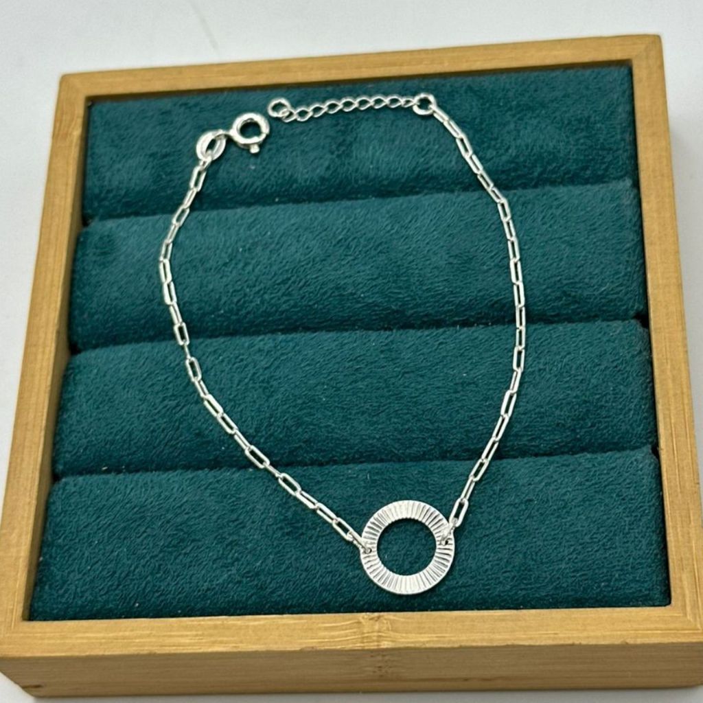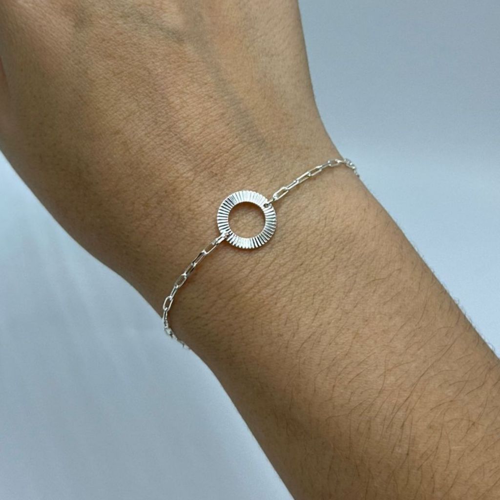 Pulseira Feminina de Prata 925 Redondo Diamantado Vazado