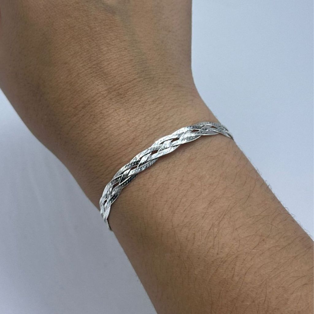 Pulseira Feminina de Prata 925 Trançada com 4 Fios