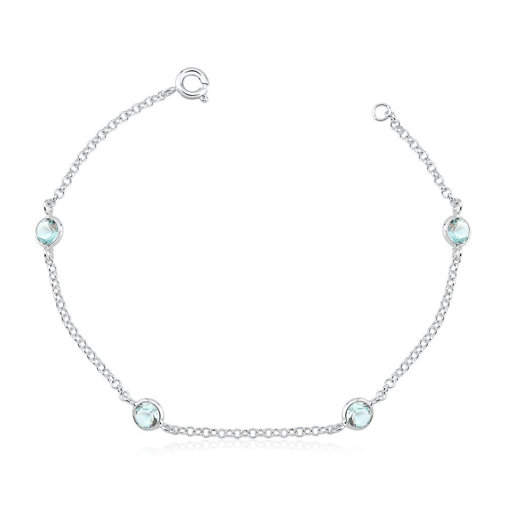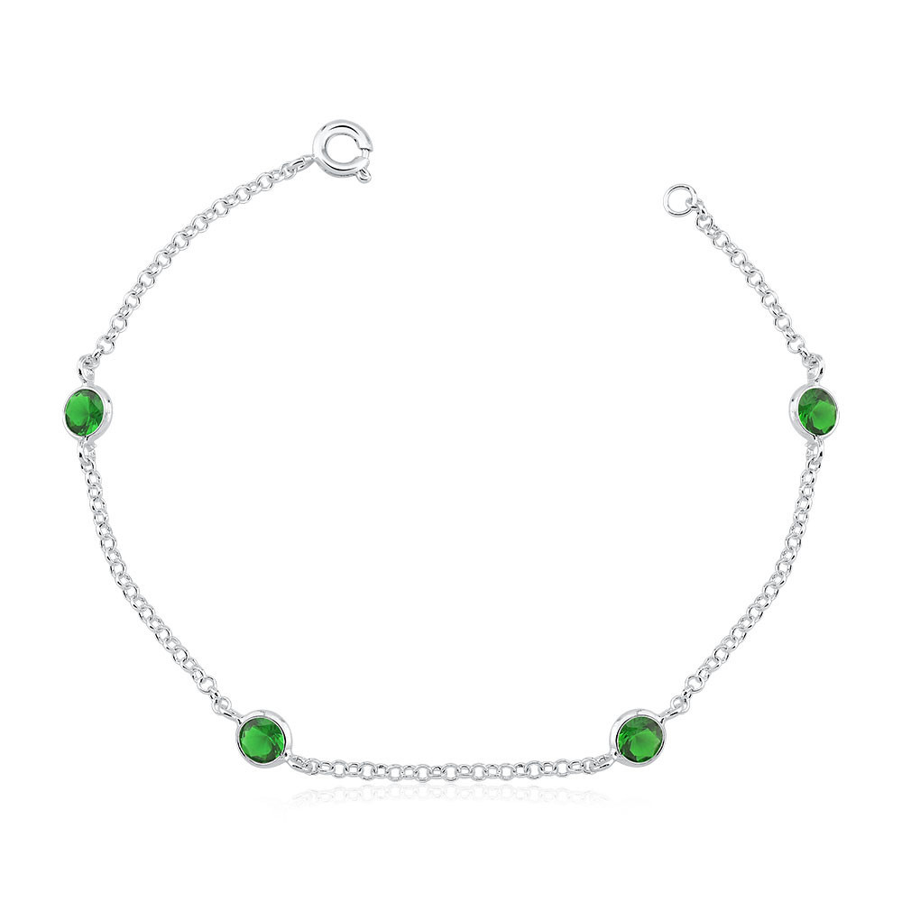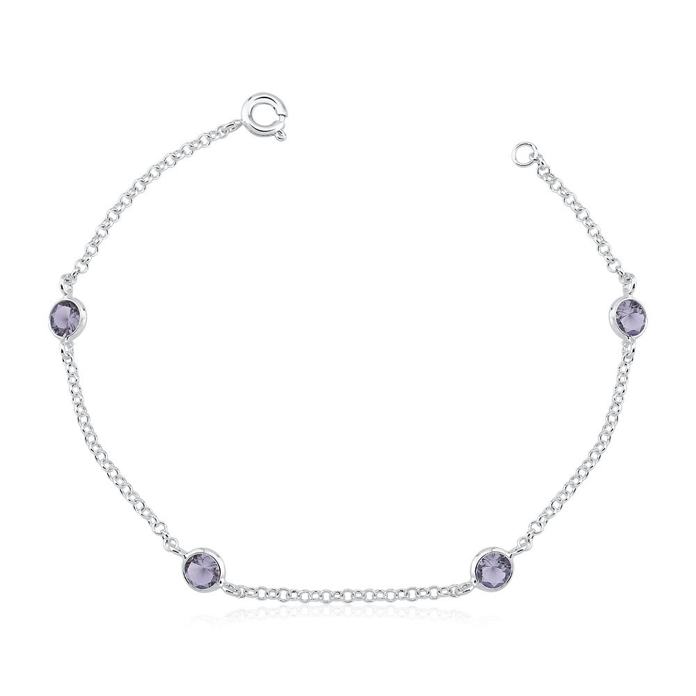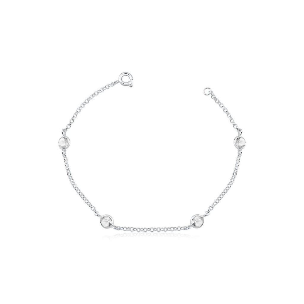 Pulseira Feminina de Prata 925 Zircônia Redonda