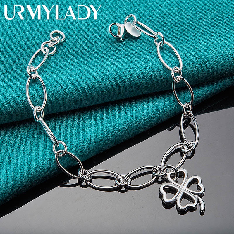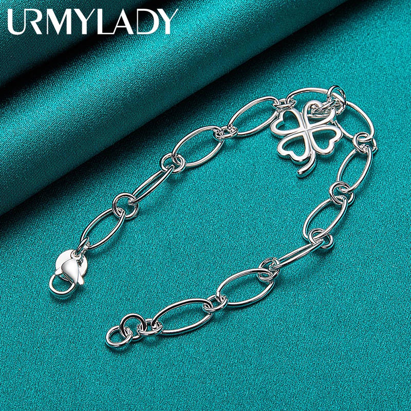 Pulseira Lucky Clover Em Prata Esterlina 925 Para Mulheres – Pingente Floral Ajustável Casamento/Festa