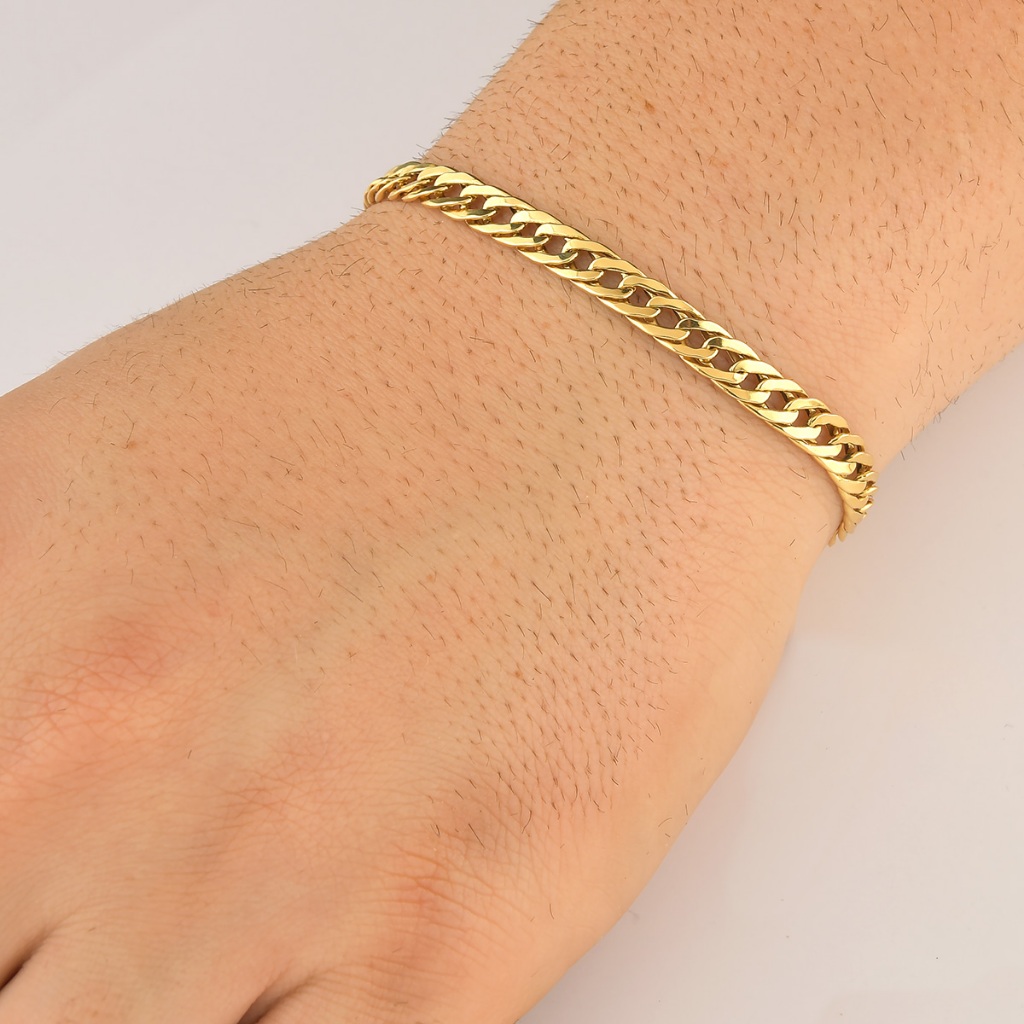 Pulseira Masculina de Ouro 18k Grumet Dupla com 22,5cm e 5,5mm