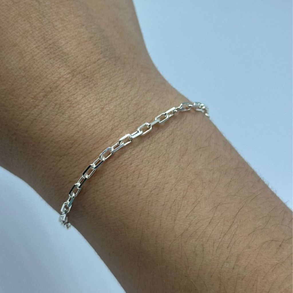 Pulseira Masculina de Prata 925 Cadeado com 21cm e 3mm