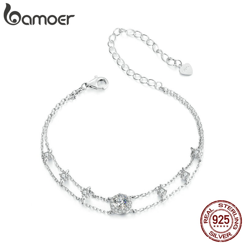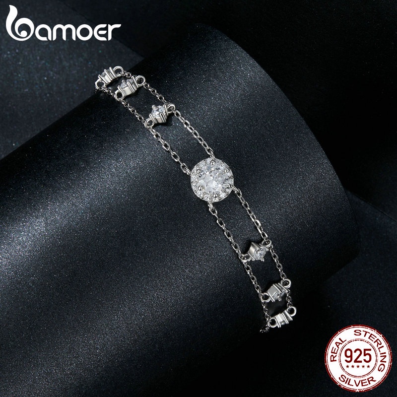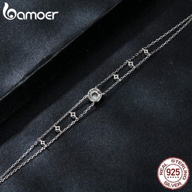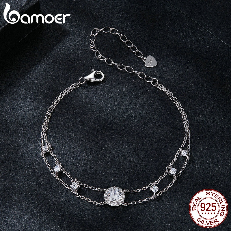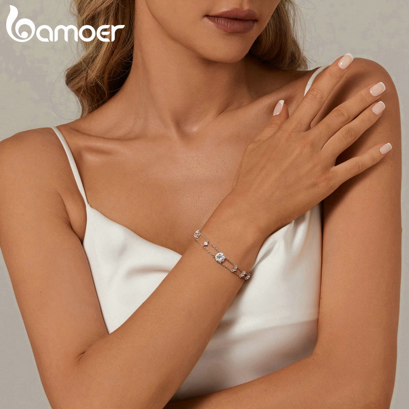 Pulseira Moissanita Brilhante De Dupla Camada Bamoer 925 Sterling Jóias Presentes Para Mulheres