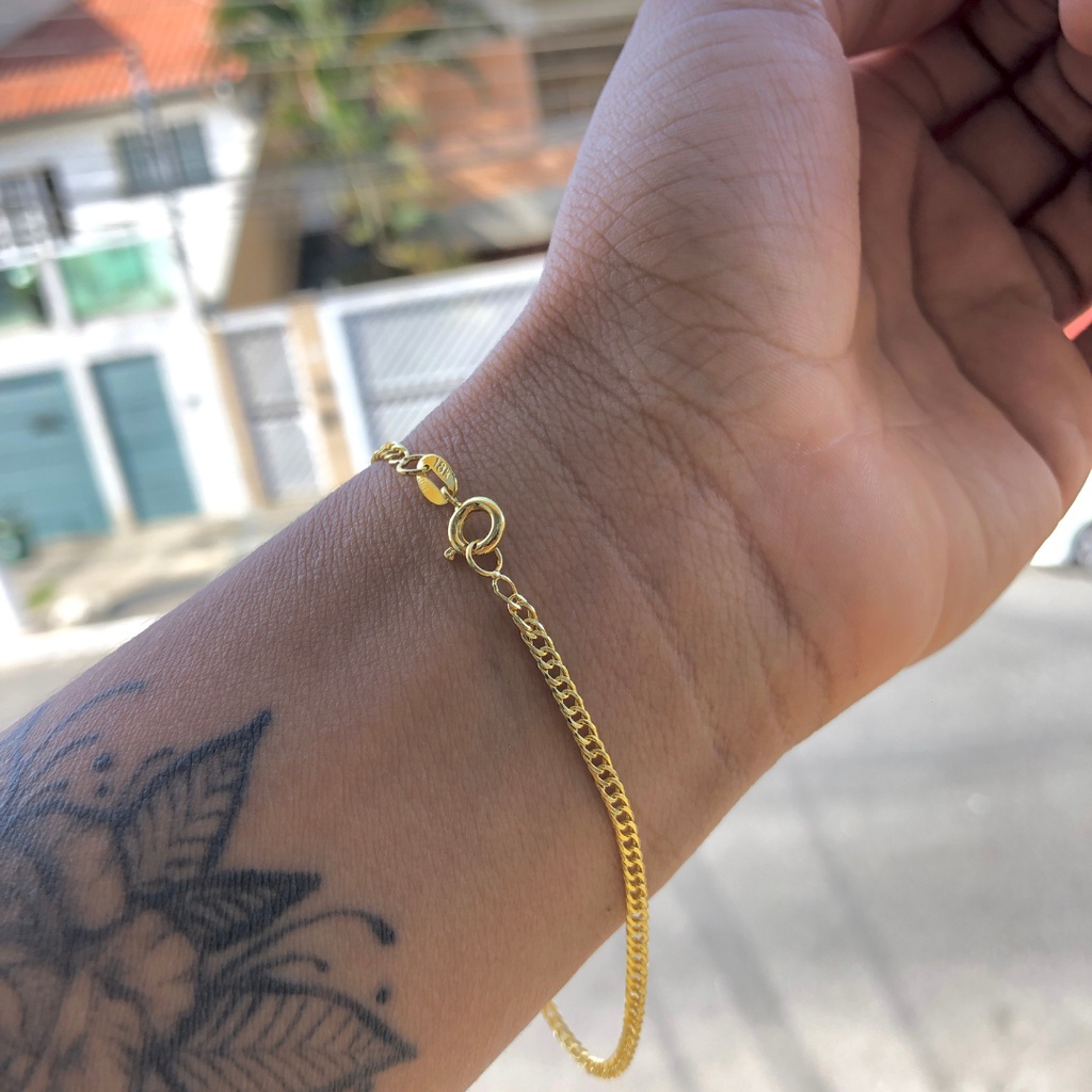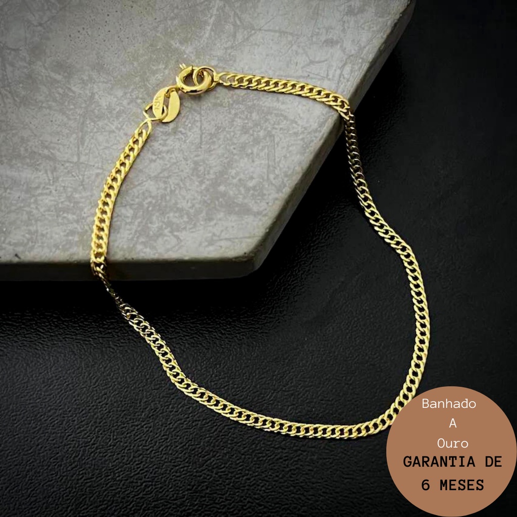 Pulseira Ouro 24k Masculina Grumet Dupla Fina Banhada A Ouro