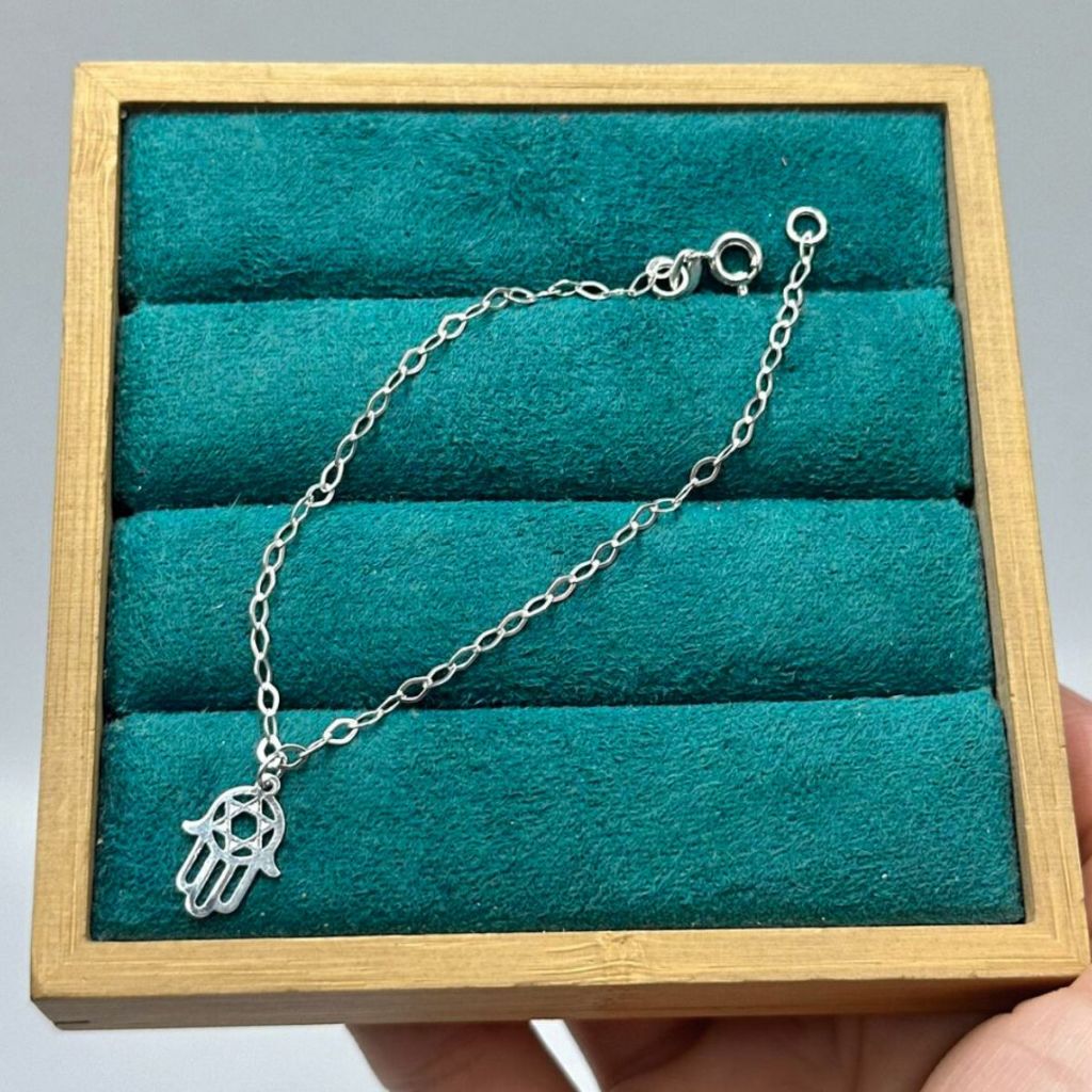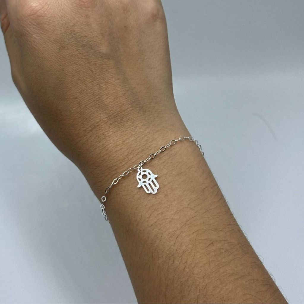 Pulseira Prata 925 mão de hamsá mão de Deus Fatima