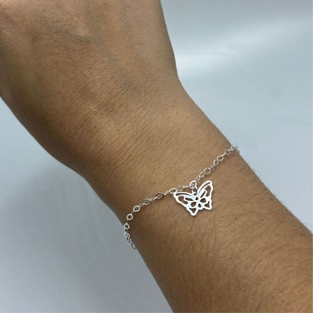Pulseira borboleta prata 925 delicada