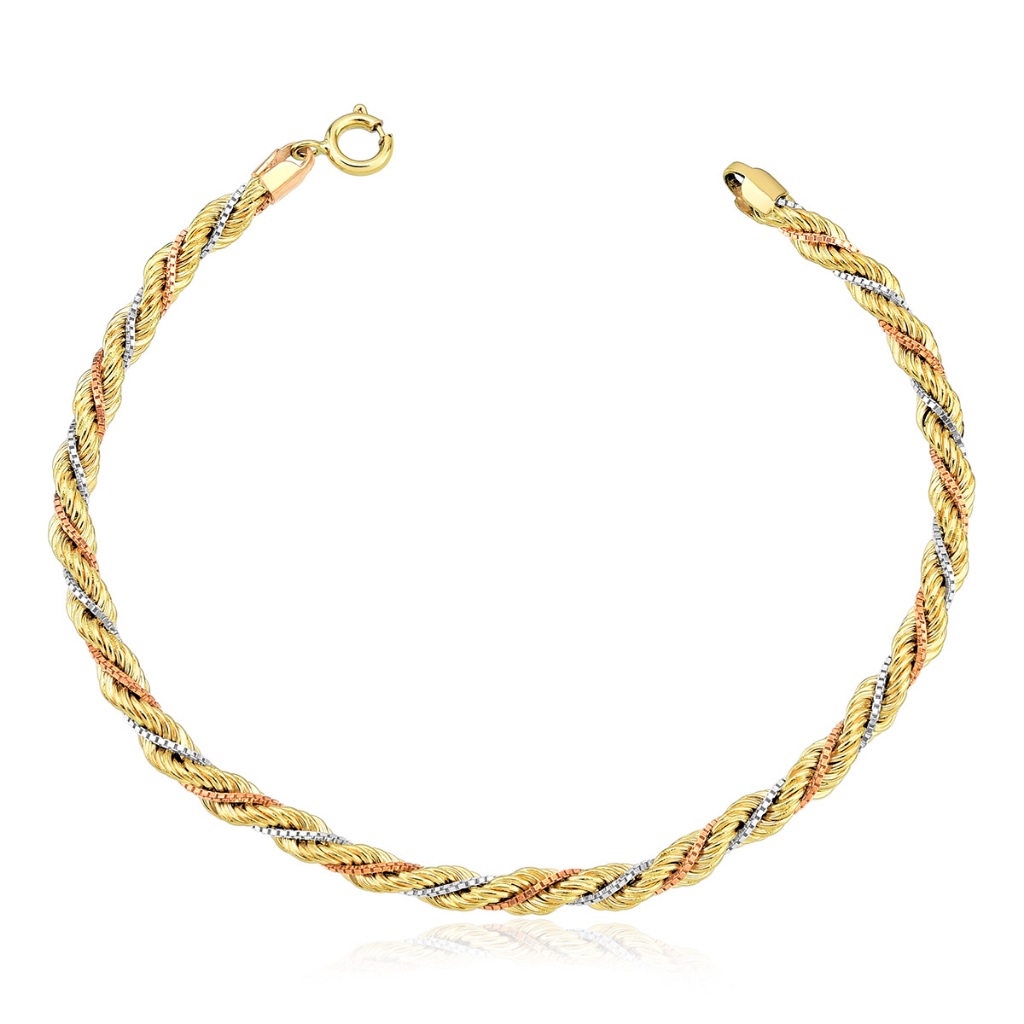 Pulseira de Ouro 18k Cordão Baiano Tricolor