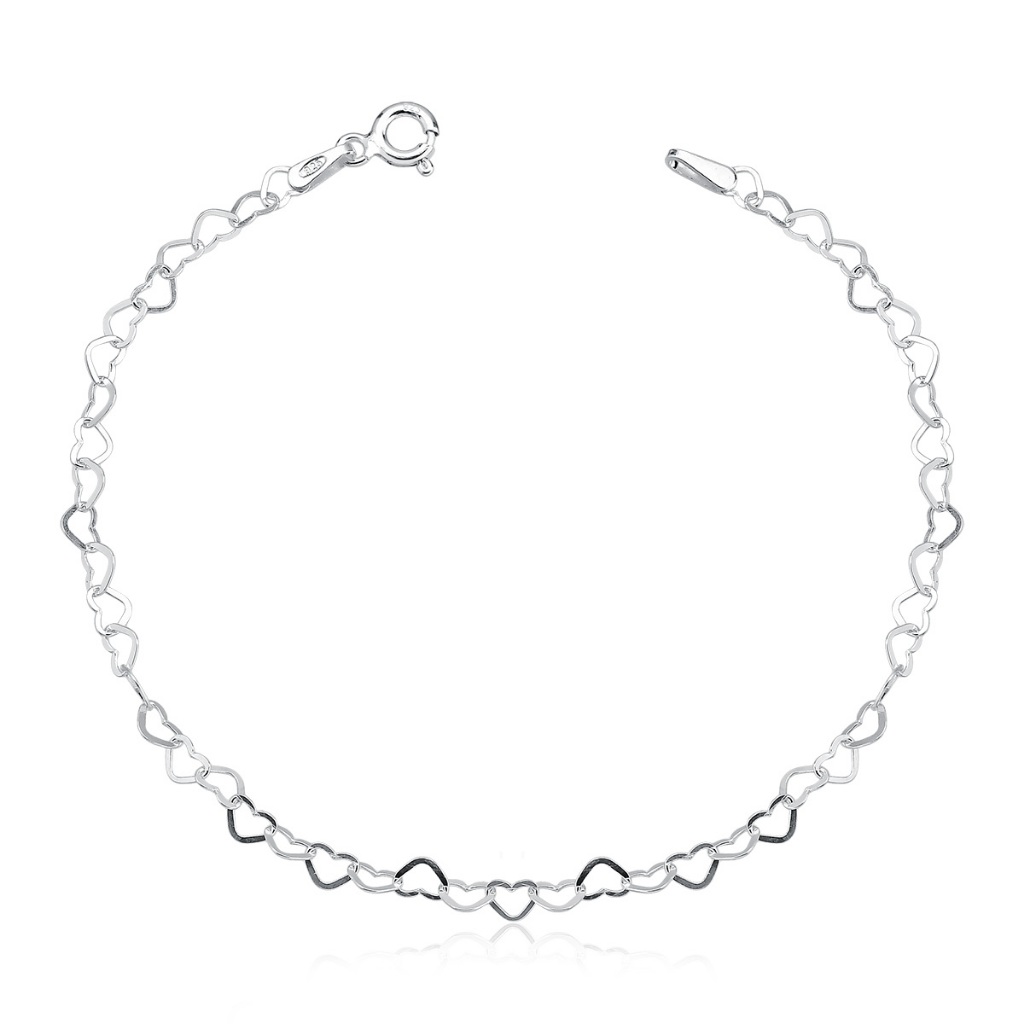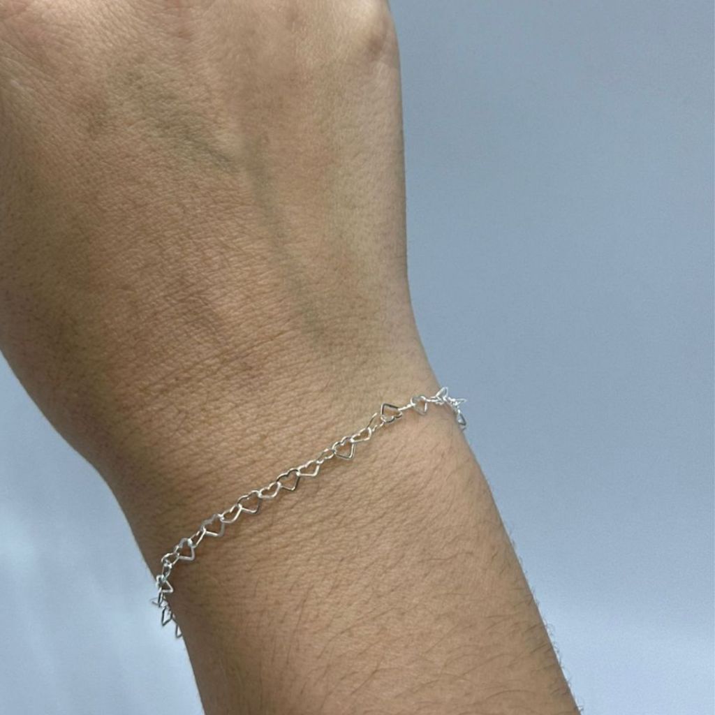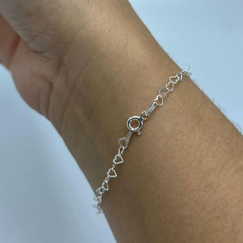 Pulseira elos coração prata 925 feminina