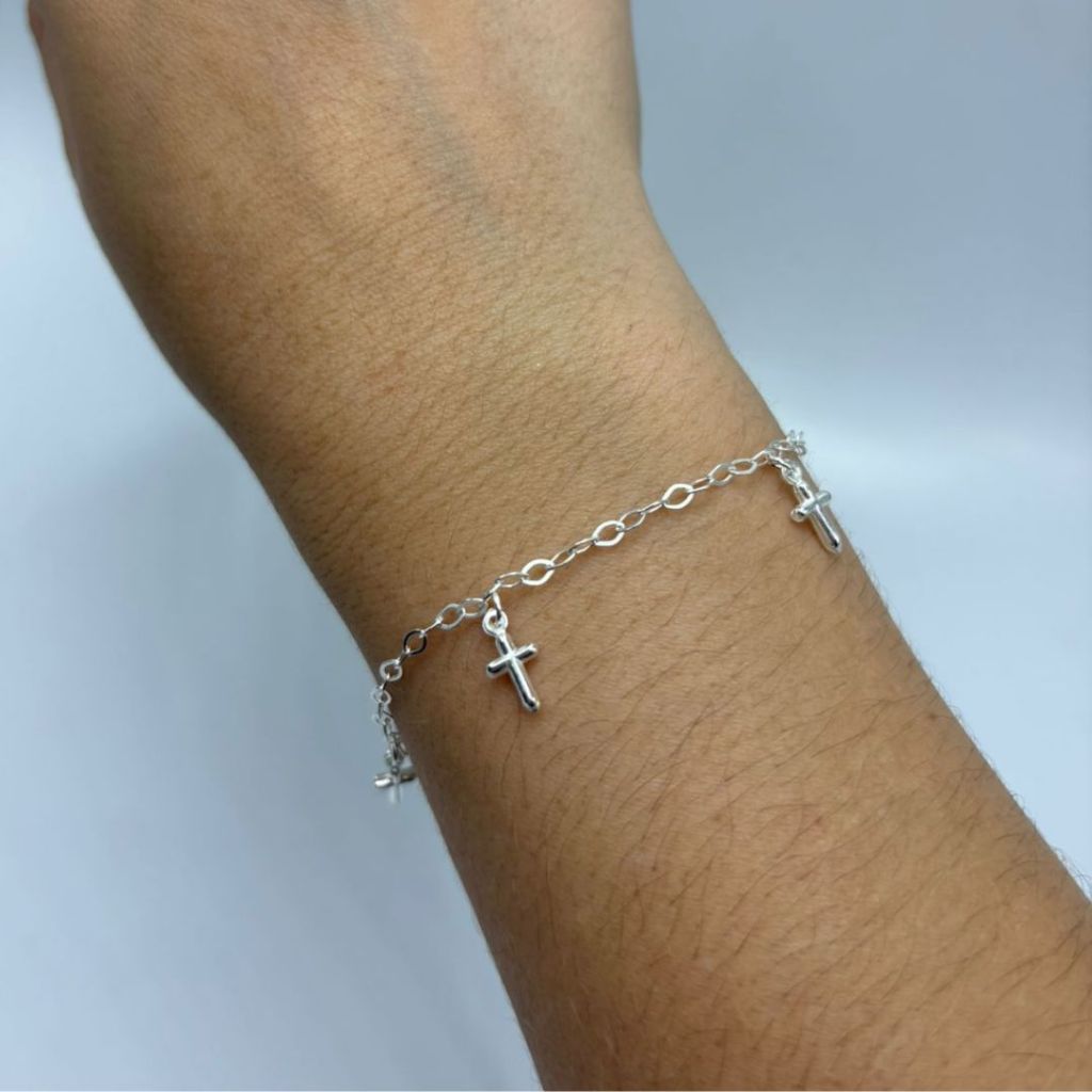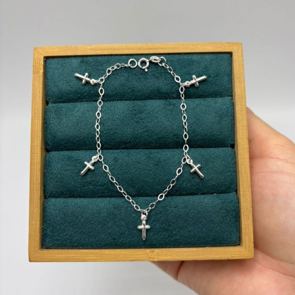 Pulseira feminina 5 cruz pequenas pendentes prata 925