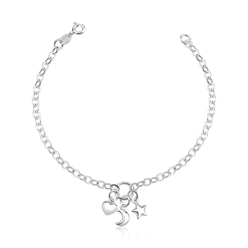 Pulseira feminina de prata 925 Patuá Coração Estrela e Lua