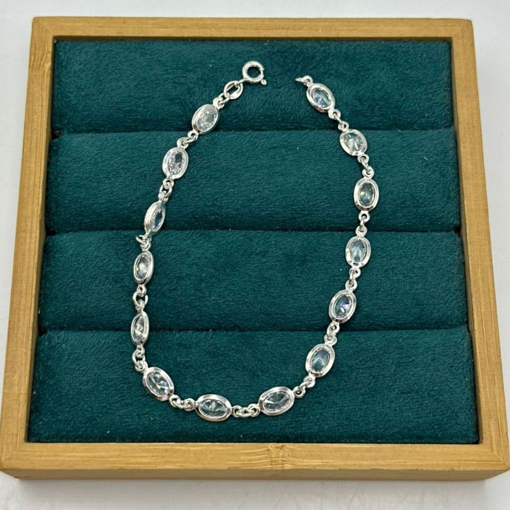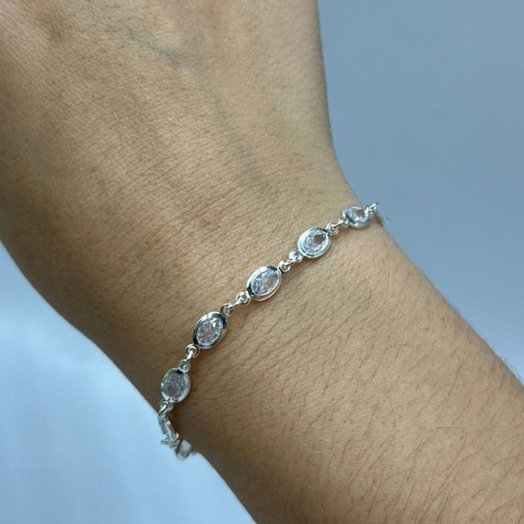 Pulseira feminina de prata 925 com zircônias ovais