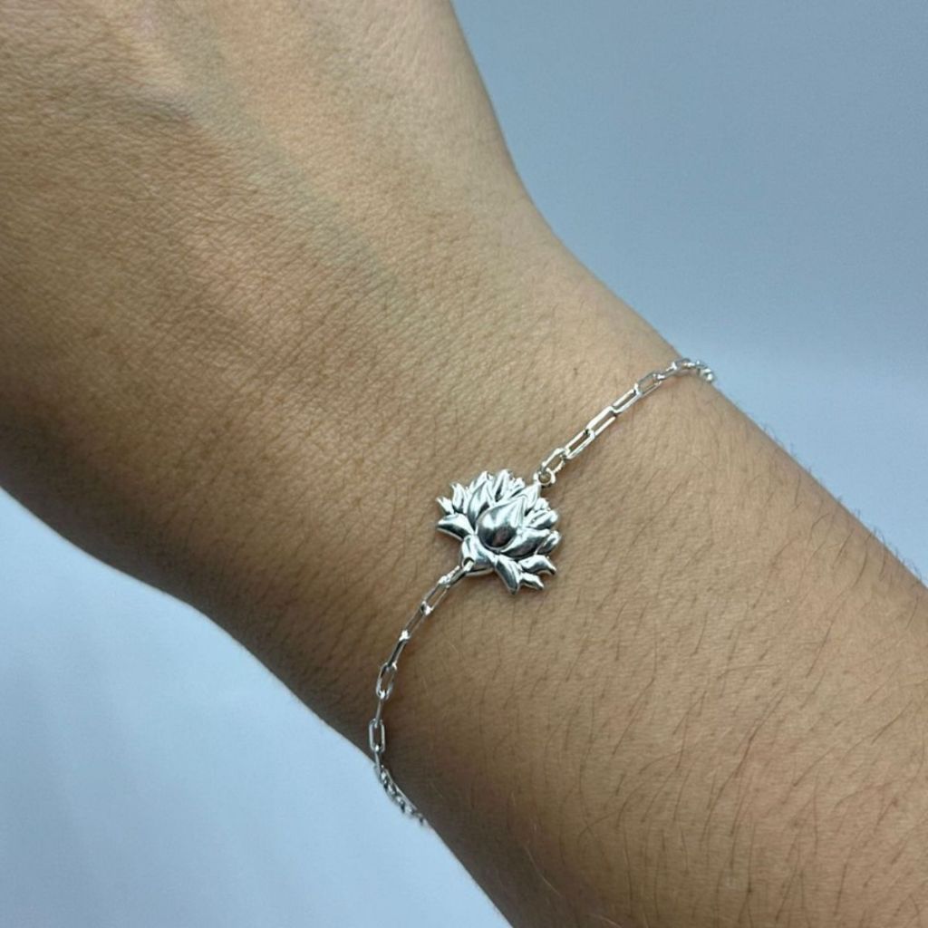 Pulseira feminina flor de Lótus prata 925
