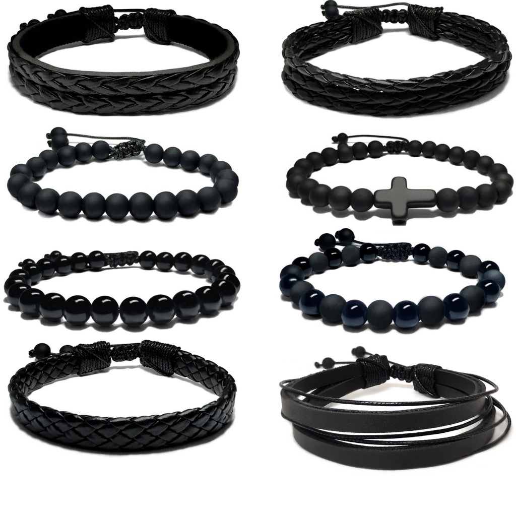 Pulseira masculina em couro preto e marrom feminino