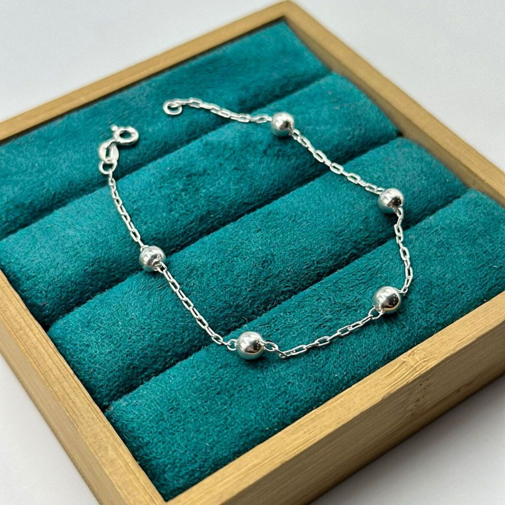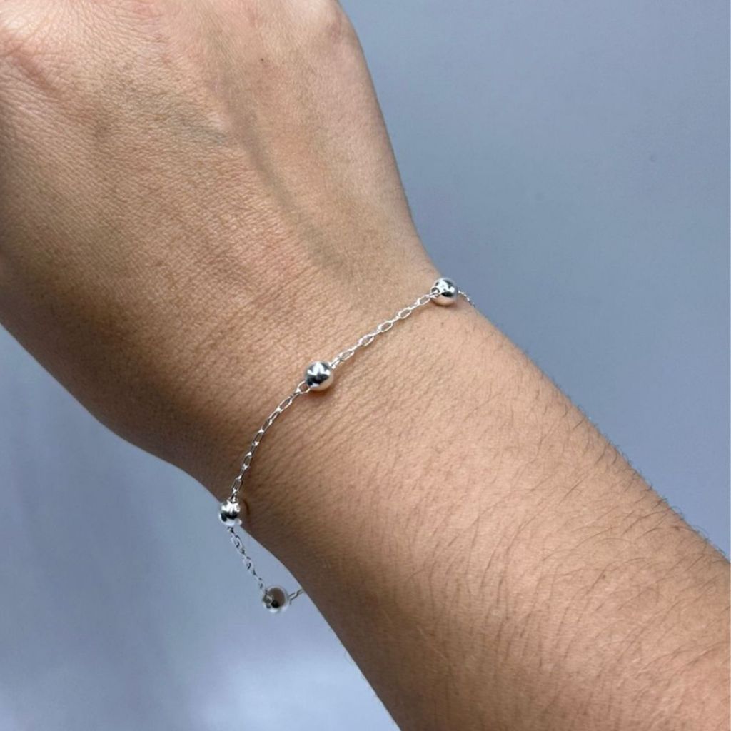 Pulseira prata 925 feminina bolinhas médias 5mm