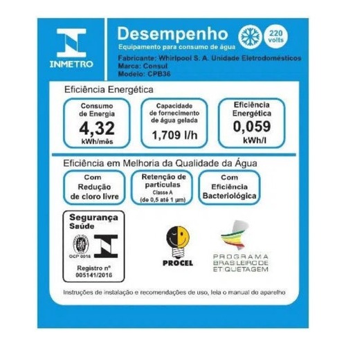 Purificador de água Consul de alta capacidade de refrigeração - CPB36AF