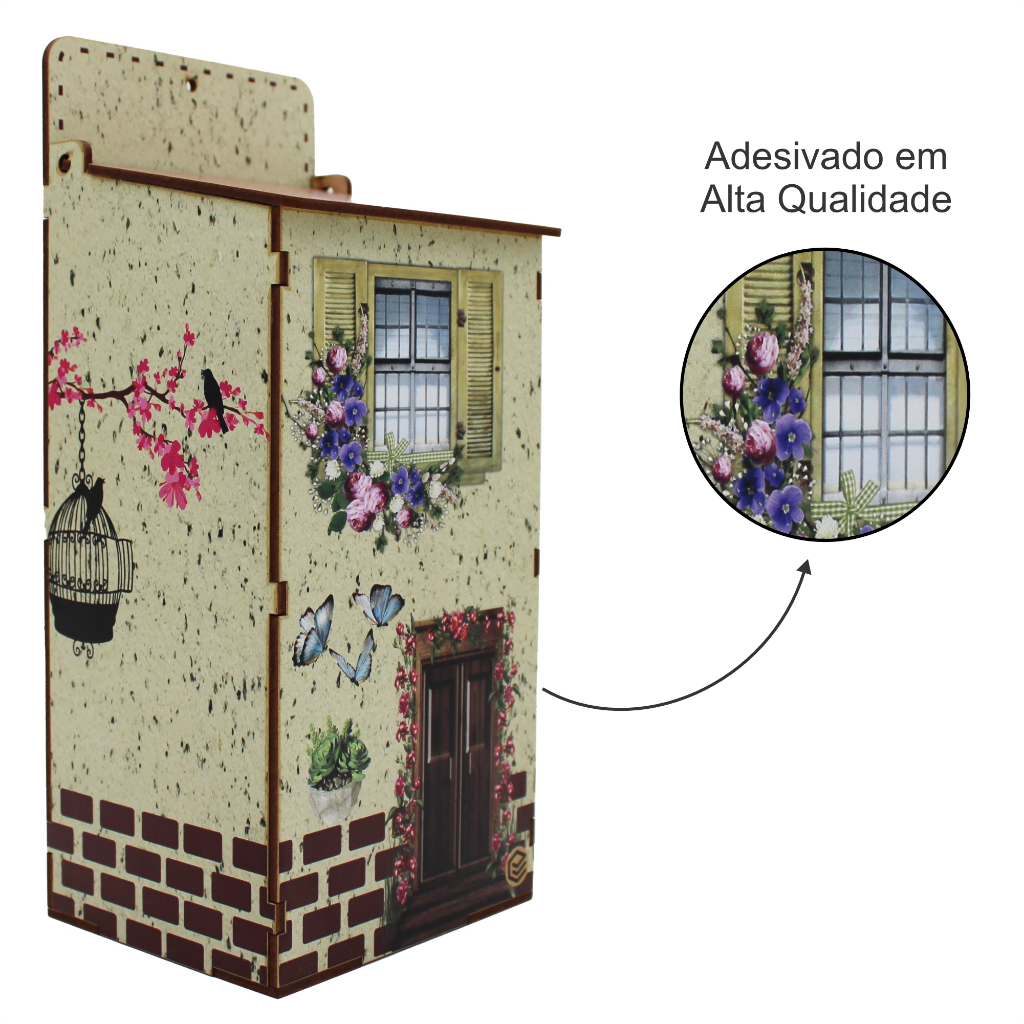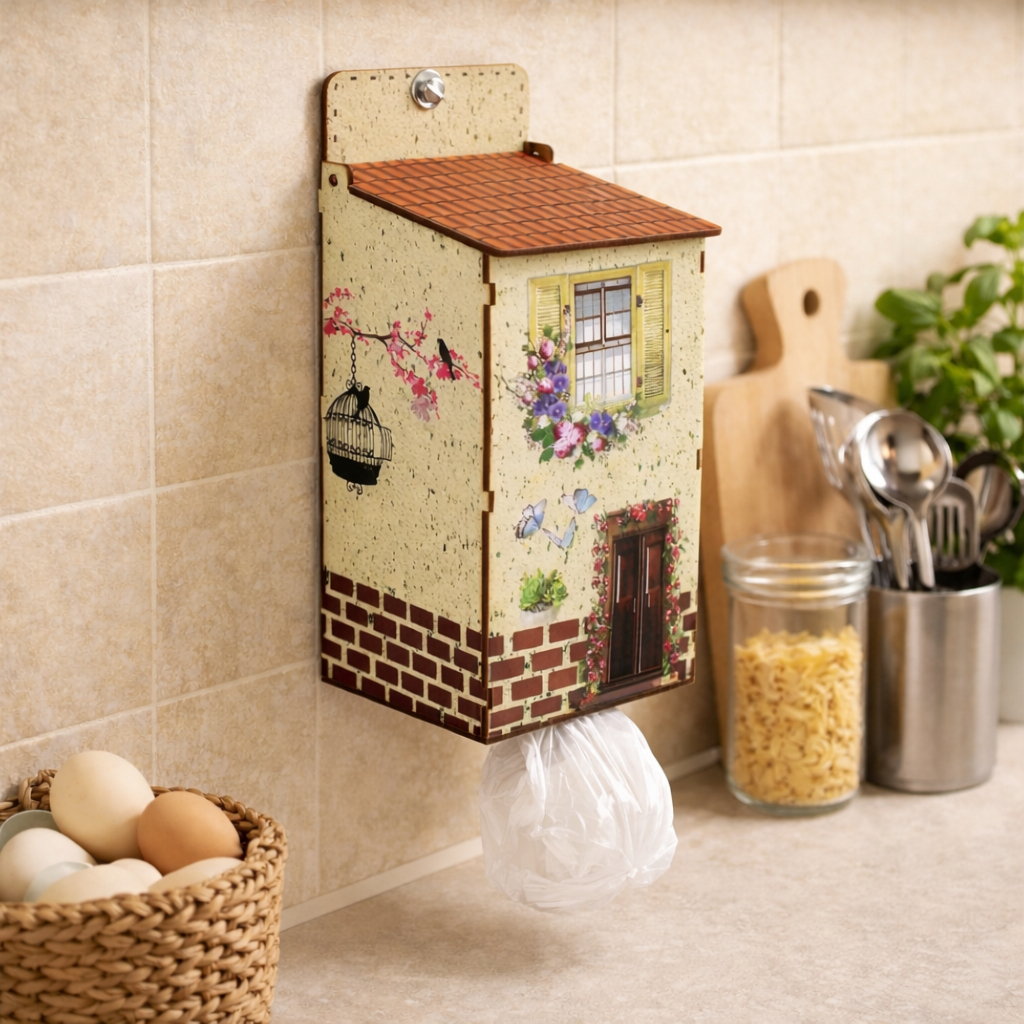 Puxa Saco de Parede Porta Sacolas Organizador Cozinha Casinha em MDF Decorativo