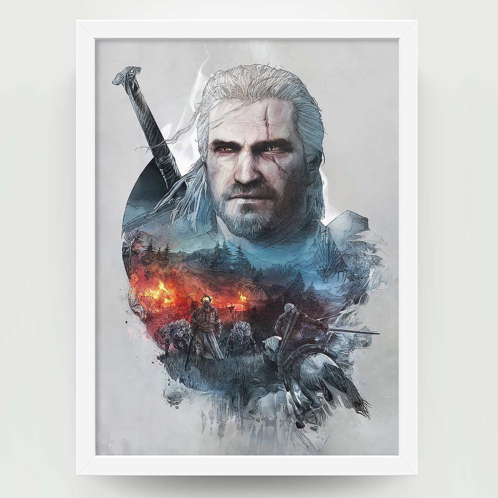 QUADRO GAME THE WITCHER 3 AXE A4 (24x33 cm - Com vidro)