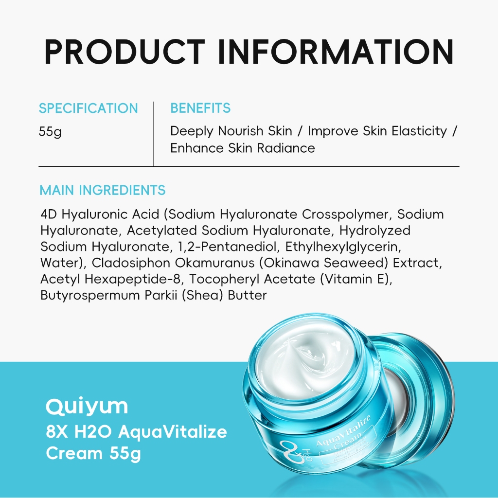 QUIYUM 8X H2O AquaVitalize Creme 55g Nutrir Profundamente A Pele Melhora O Brilho Da