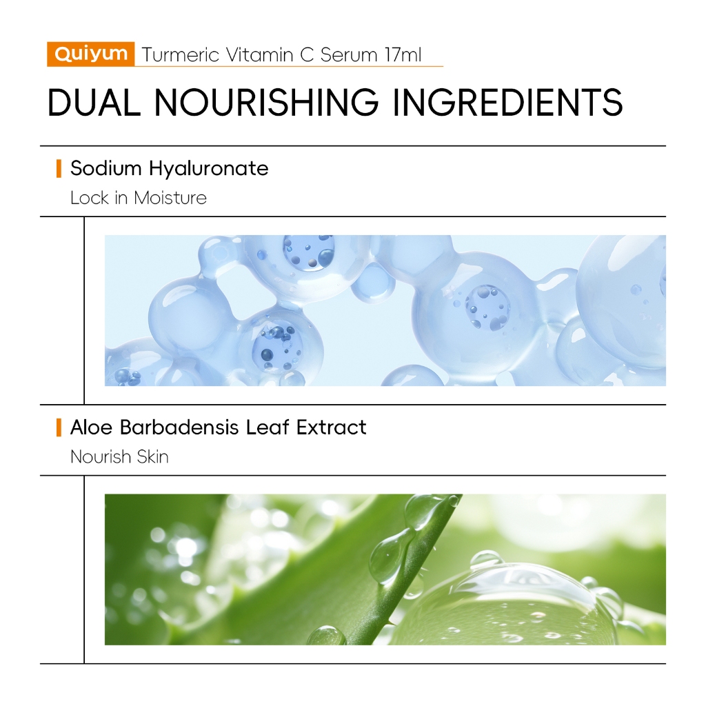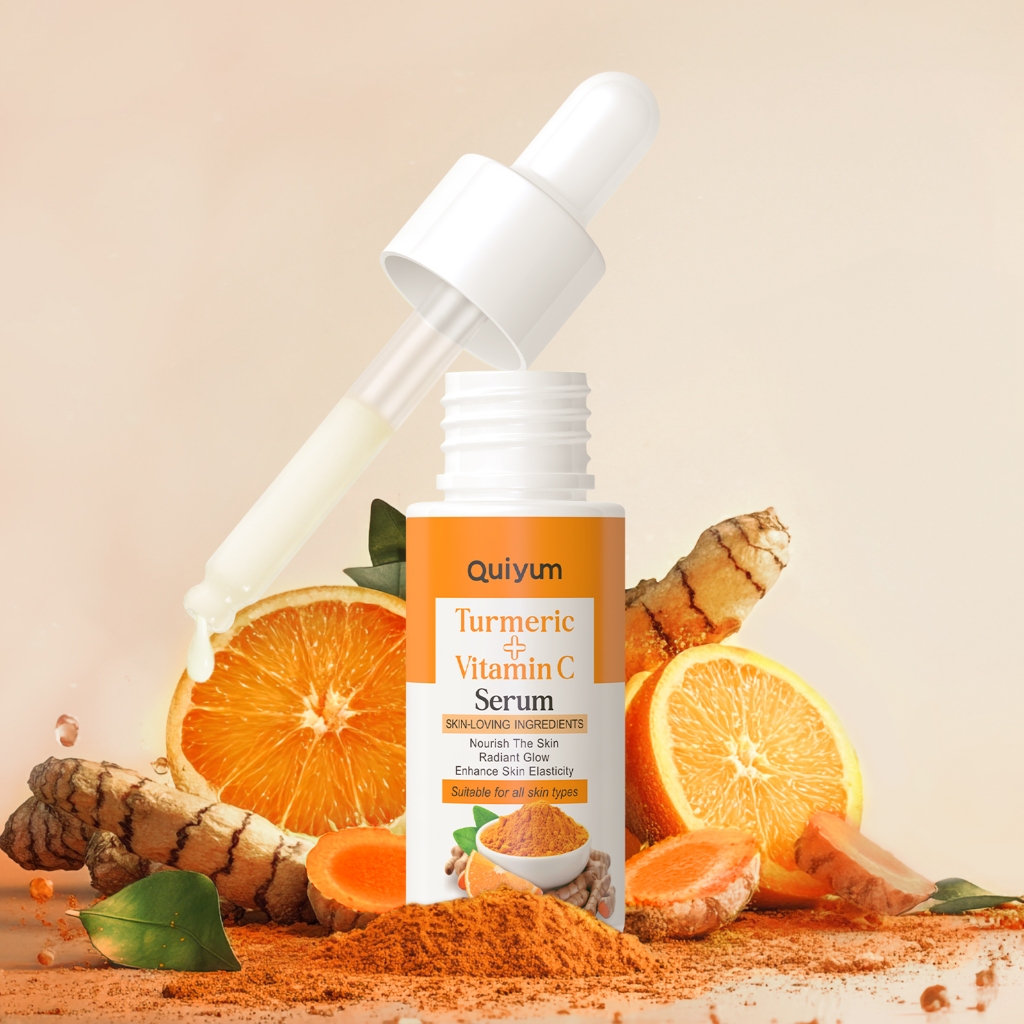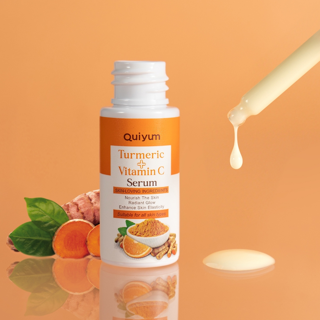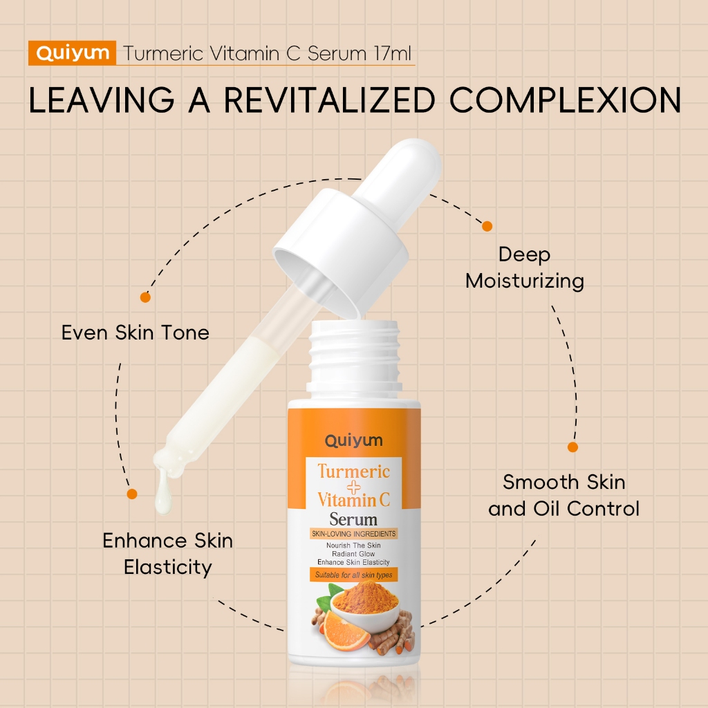 QUIYUM Cúrcuma Vitamina C Soro 17ml Reduz Manchas Linhas Finas Suaves Essência Hidratante Iluminadora